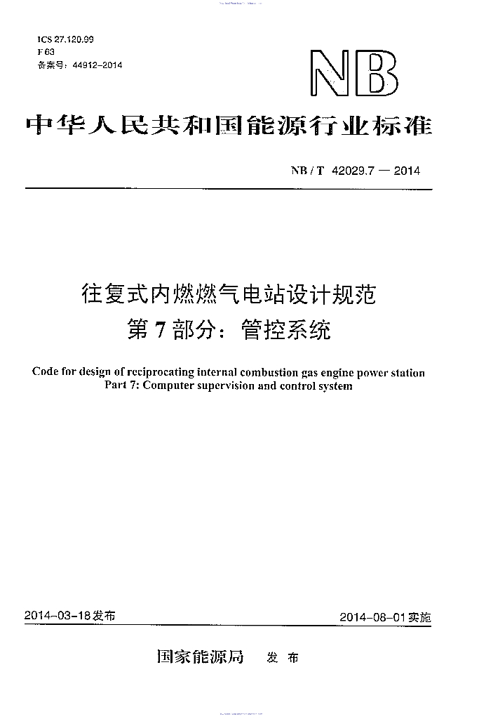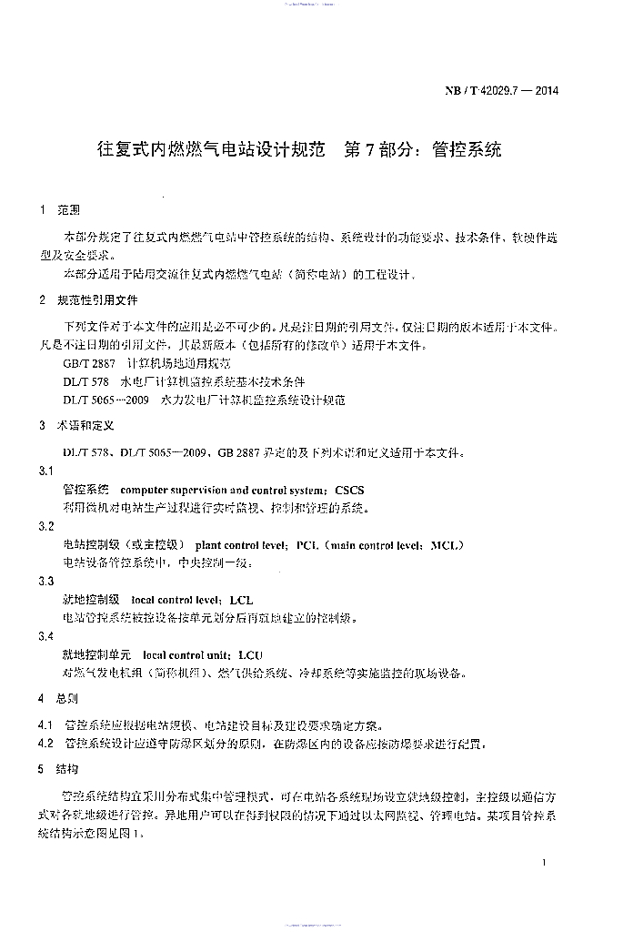 NB/T 42029.7-2014 往复式内燃燃气电站设计规范 第7部分:管控系统