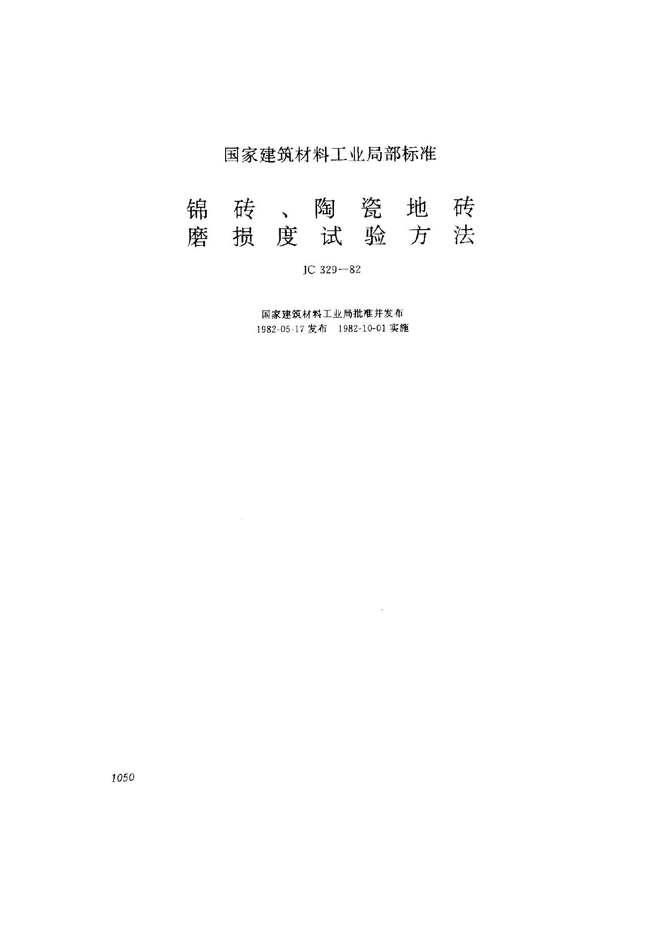 JC 329-1982 锦砖、陶瓷地砖磨损度试验方法