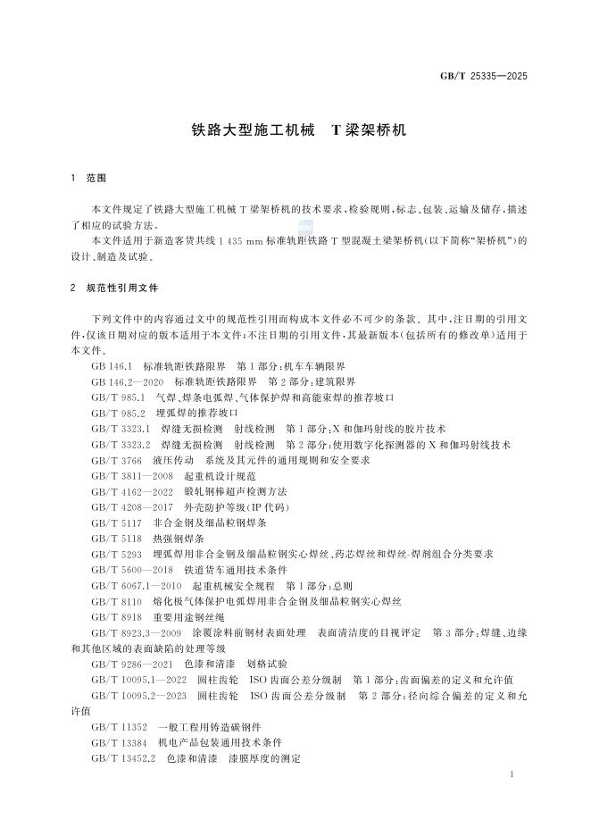 GB/T 25335-2025 铁路大型施工机械 T梁架桥机