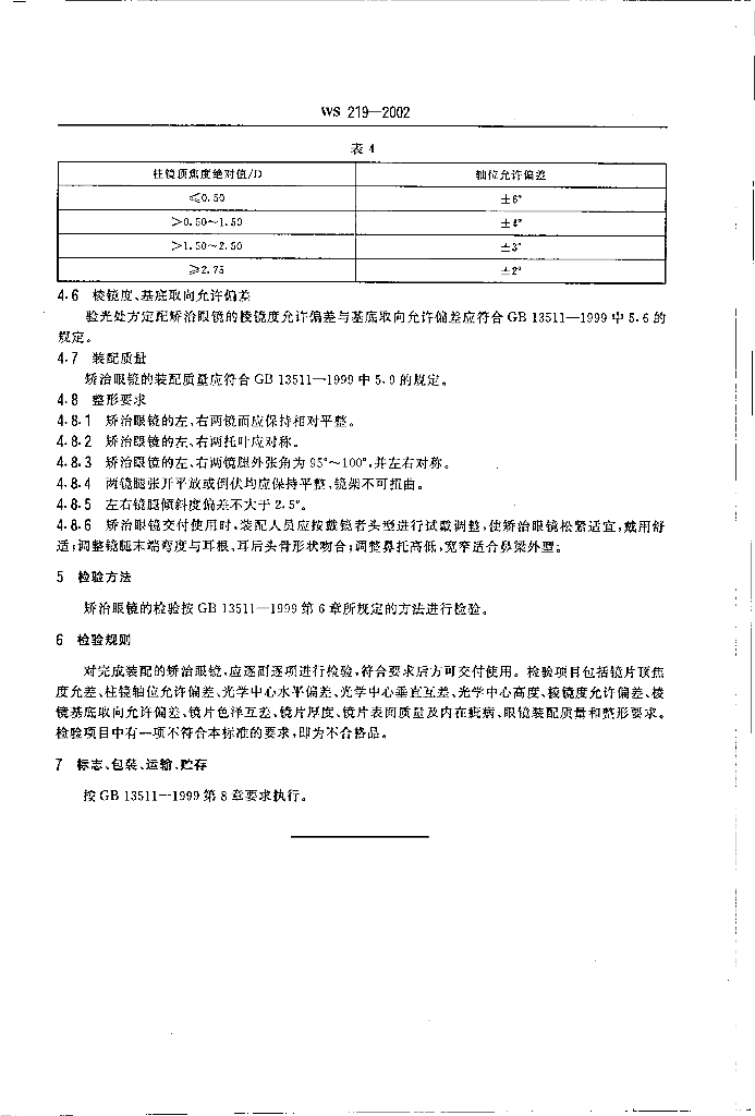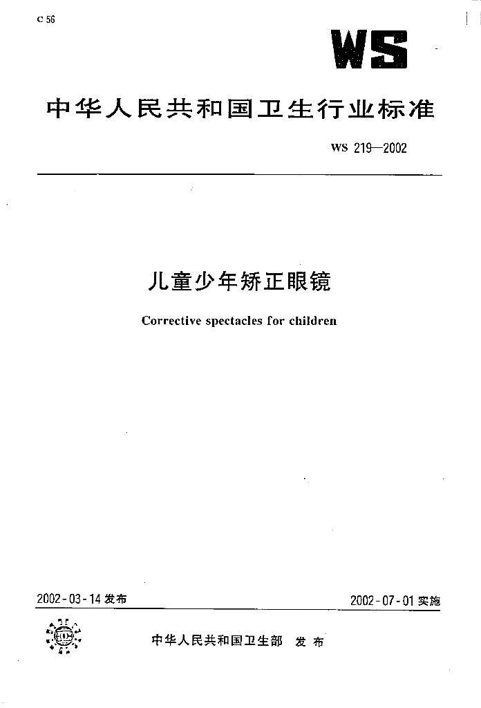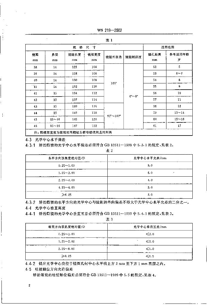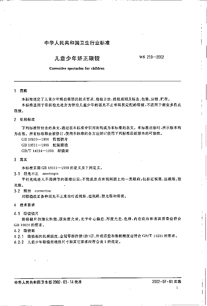 WS 219-2002 儿童少年矫正眼镜