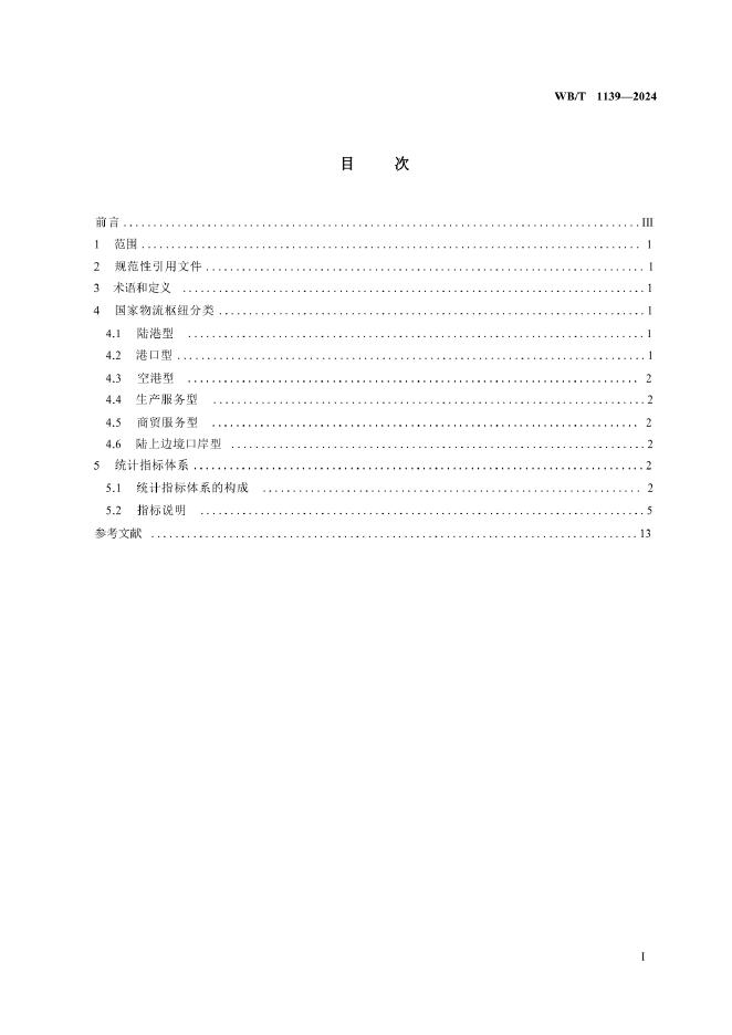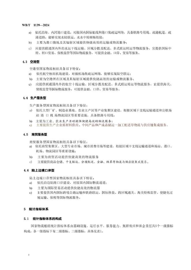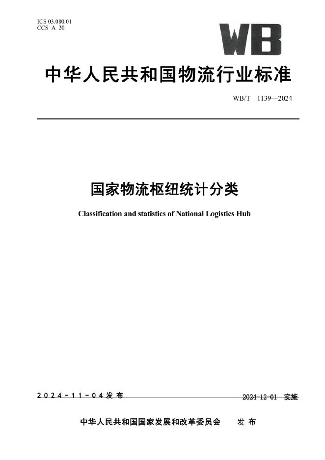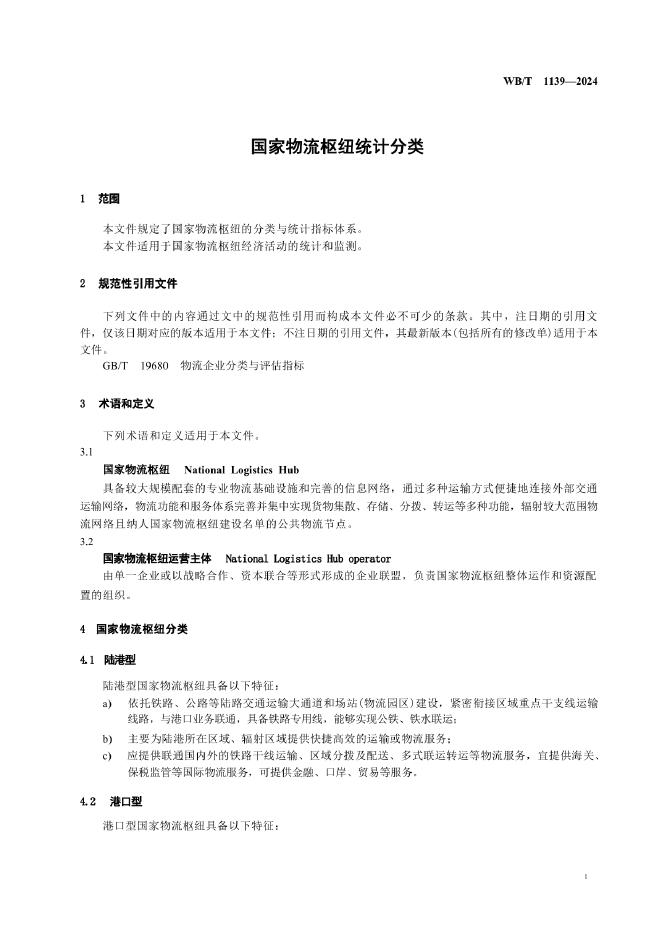 WB/T 1139-2024 国家物流枢纽统计分类