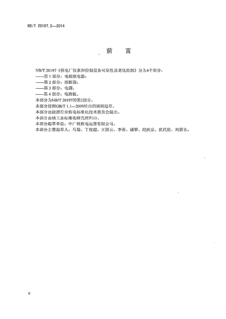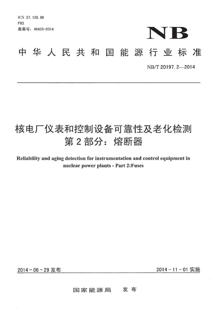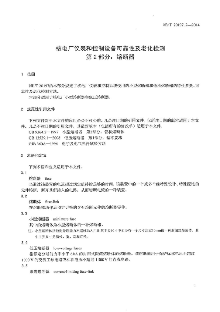 NB/T 20197.2-2014 核电厂仪表和控制设备可靠性及老化检测 第2部分:熔断器