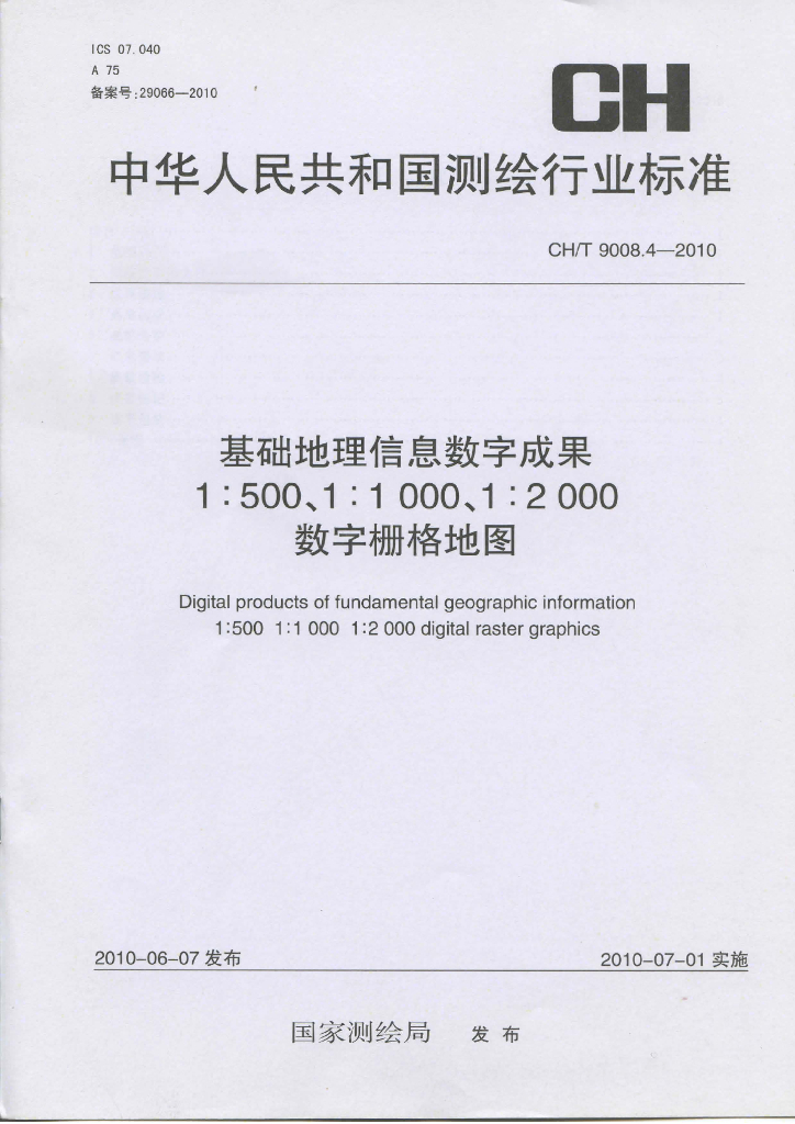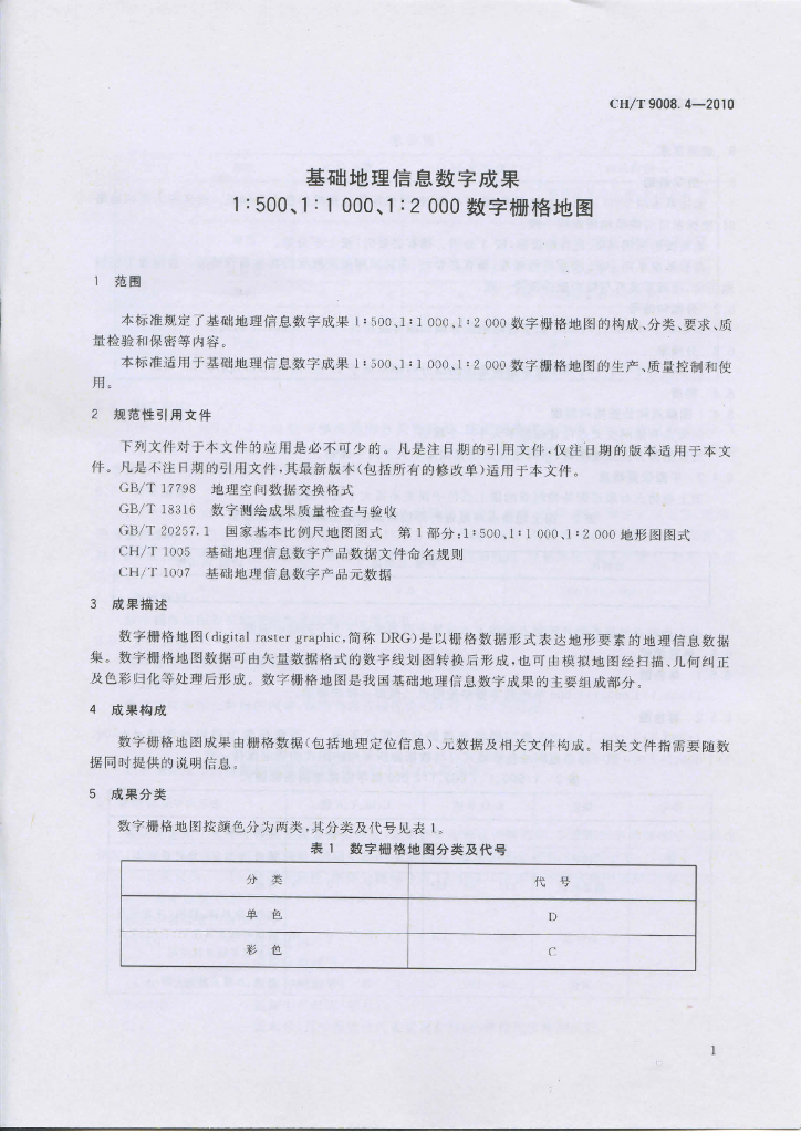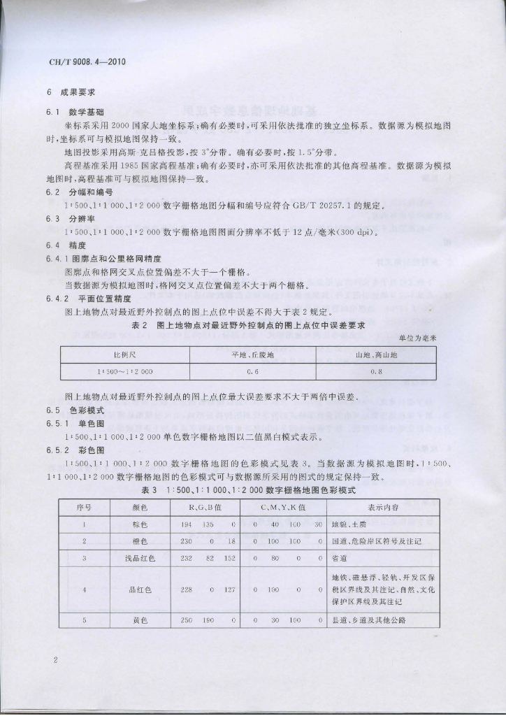 CH/T 9008.4-2010 基础地理信息数字成果1:500 1:1 000 1:2 000数字栅格地图