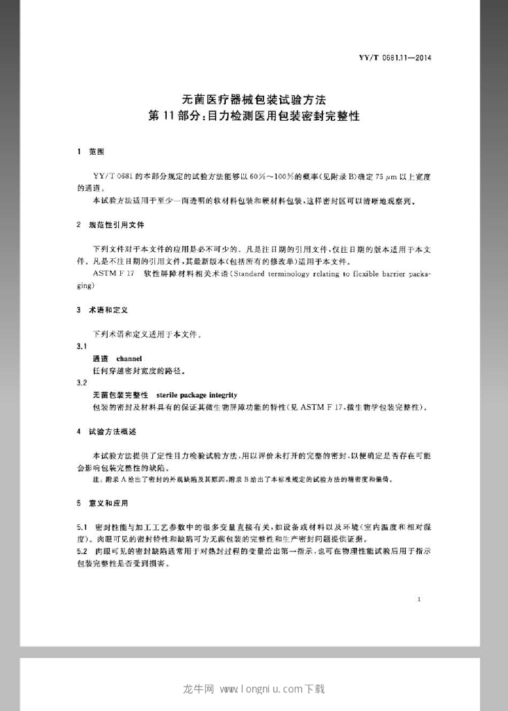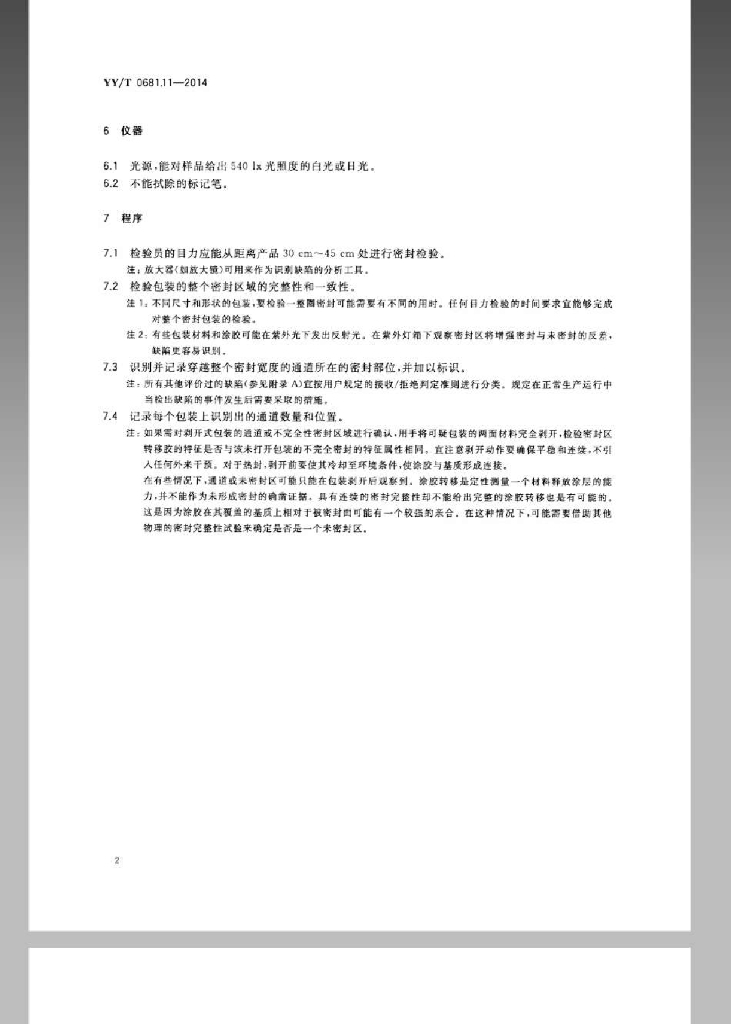 YY/T 0681.11-2014 无菌医疗器械包装试验方法 第11部分:目力检测医用包装密封完整性