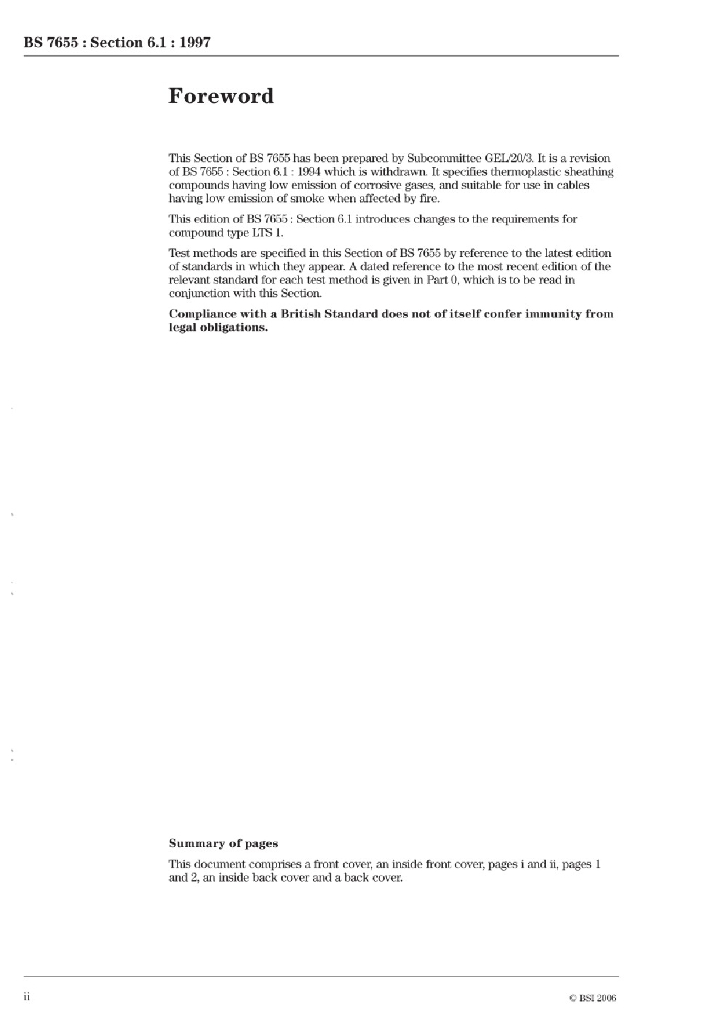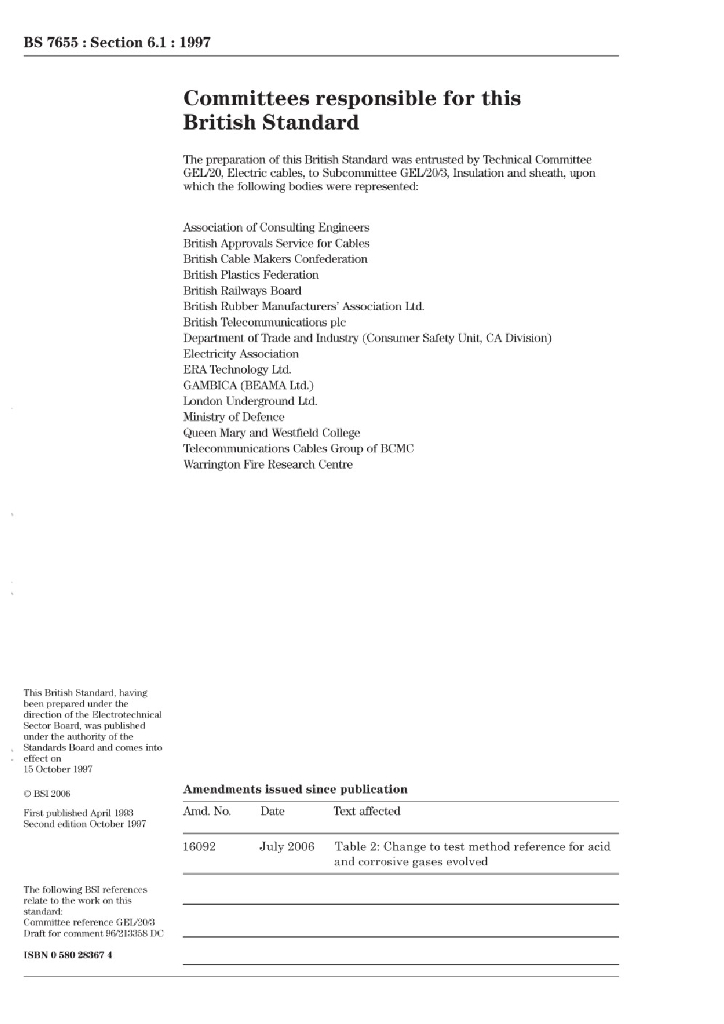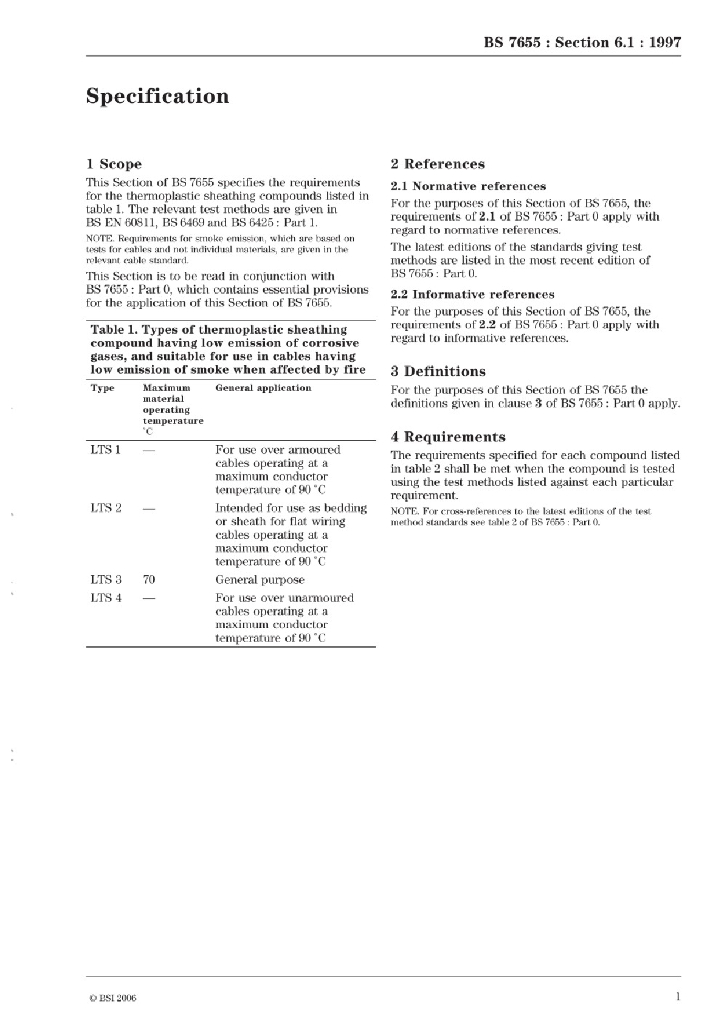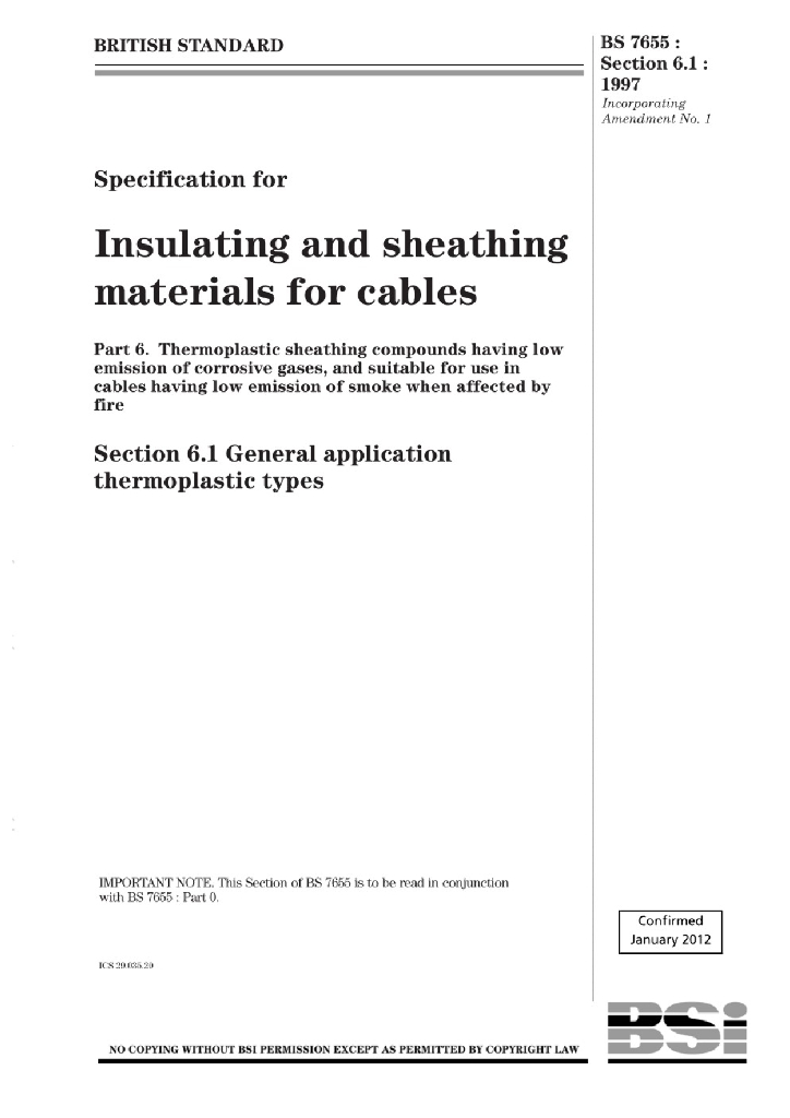 BS 7655-6.1:1997 电缆绝缘和护套材料规范 第6部分:散发少量腐蚀性气体且适用于受火灾影响时散发少量烟雾的电缆热塑性护套化合物 第1节:通用热塑类型