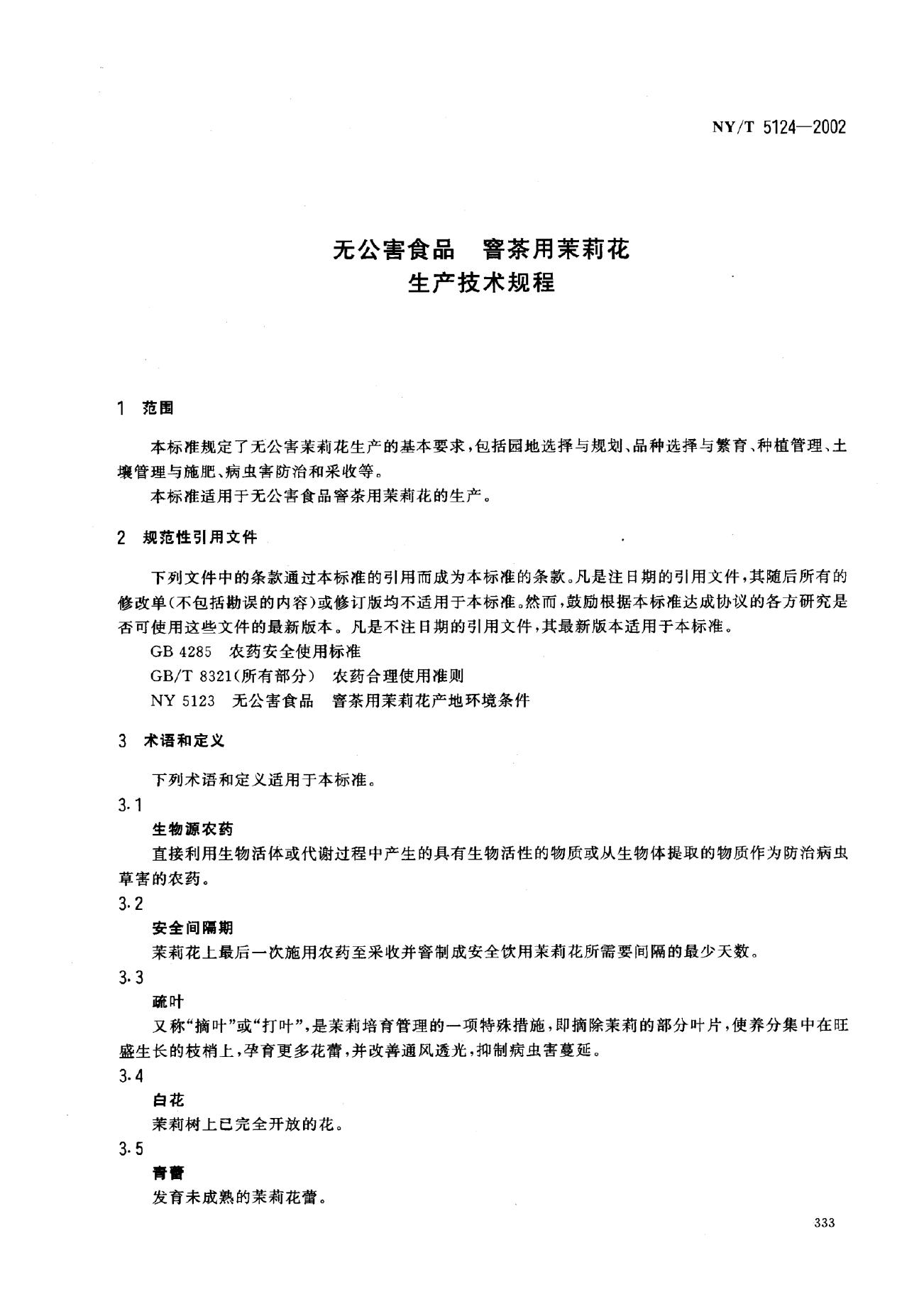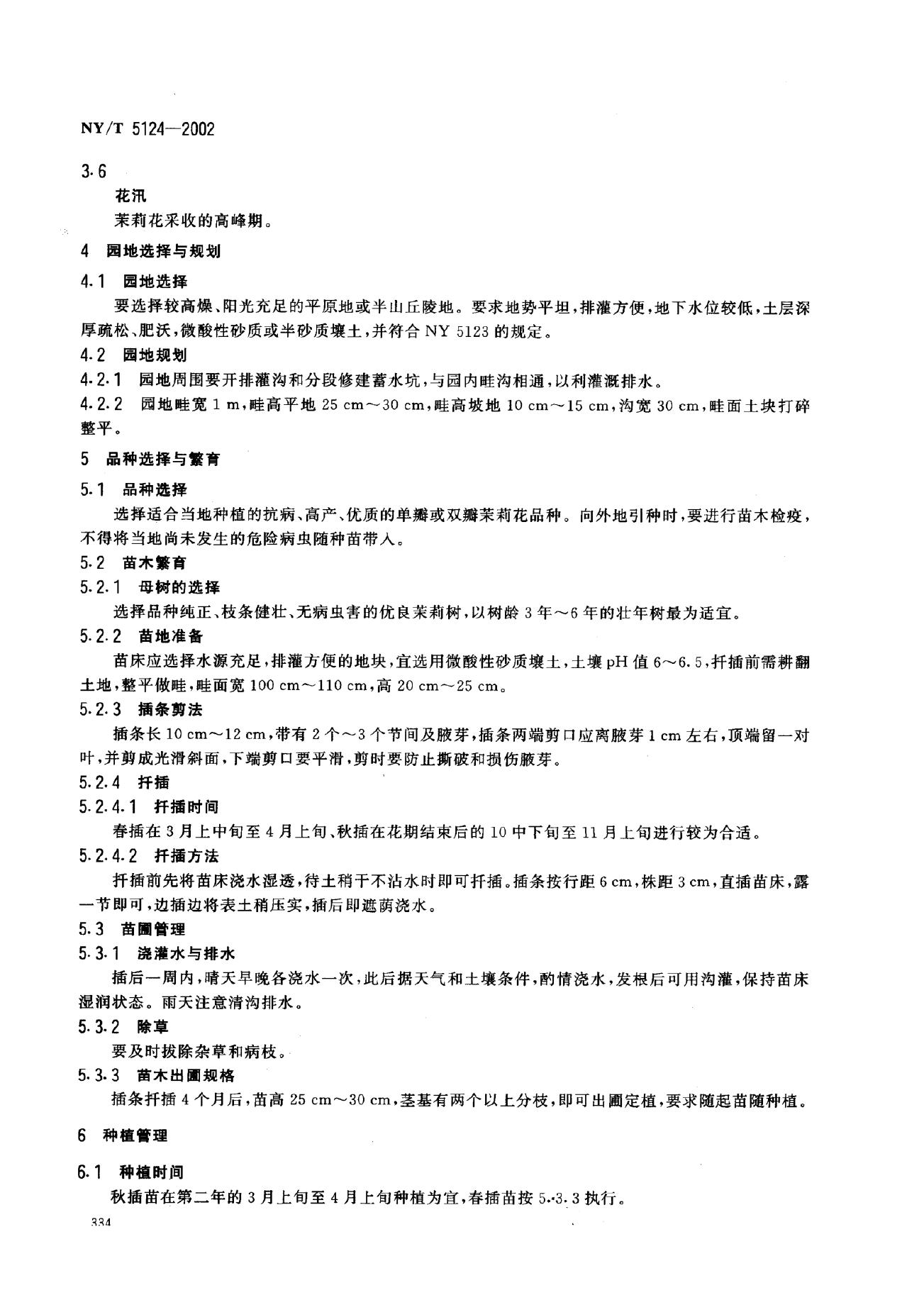 NY/T 5124-2002 无公害食品 窨茶用茉莉花生产技术规程