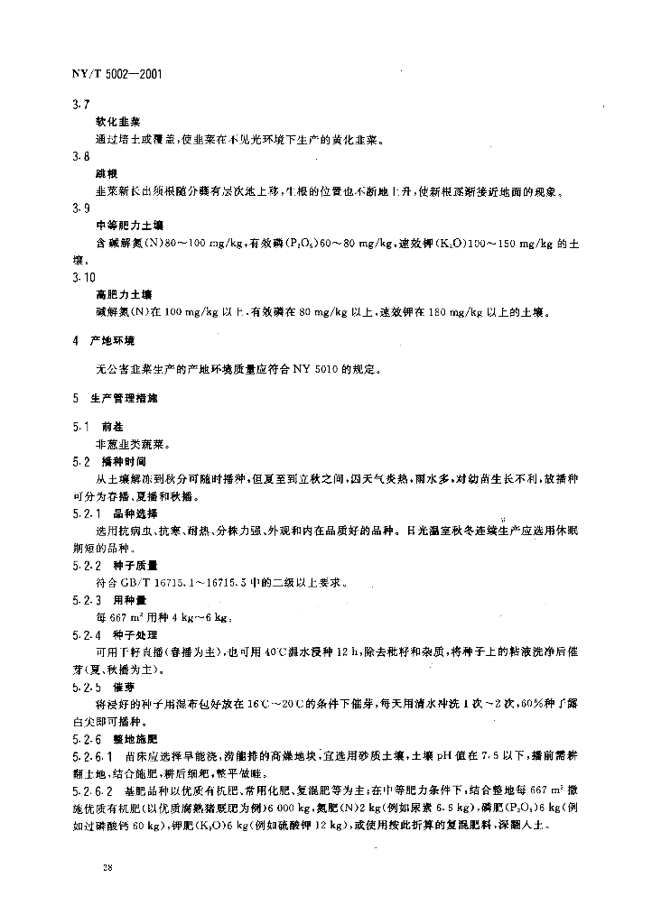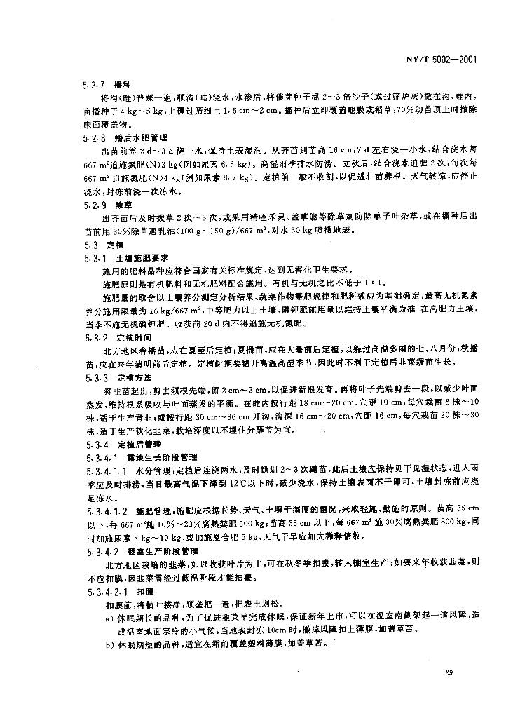 NY/T 5002-2001 无公害食品 韭菜生产技术规程