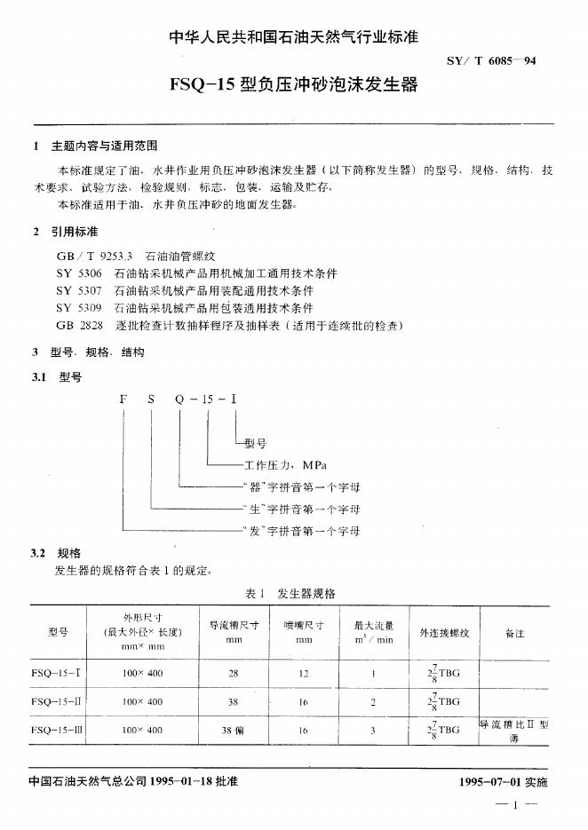 SY/T 6085-1994 FSO-15型负压冲砂泡沫发生器