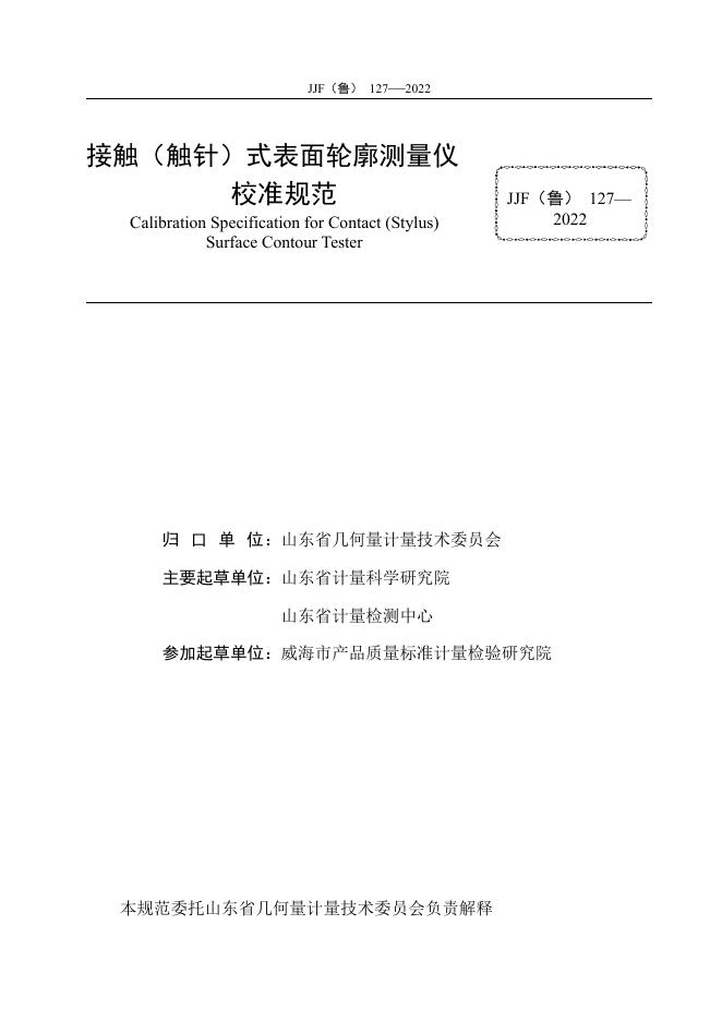 JJF(鲁)127-2022 接触(触针)式表面轮廓测量仪校准规范