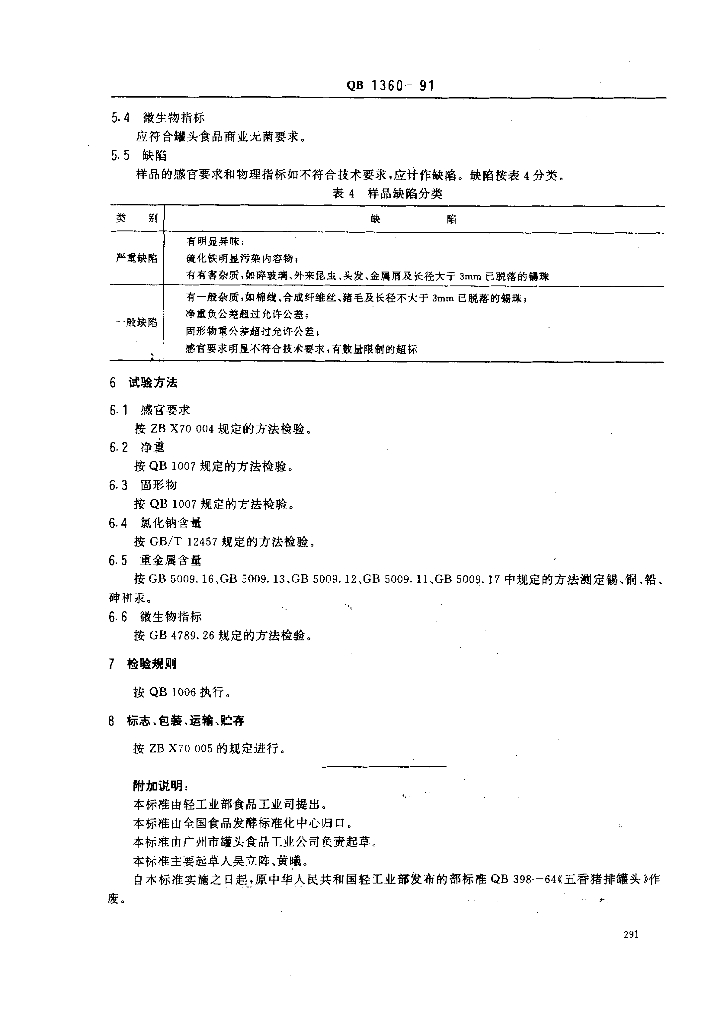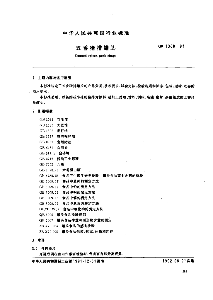 QB 1360-1991 五香猪排罐头