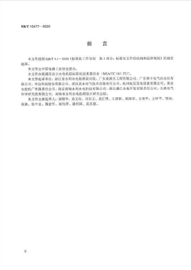浙江省水利水电勘测设计院、广东省源天工程有限公司、广东南丰电气自动化有限公司、华自科技股份有限公司、武汉武水电气技术有限责任公司、杭州杭发发电设备有限公司、重庆水轮机厂有限责任公司、南京南瑞水利水电科技有限公司、湖北清江水电开发有限责任公司、天津电气科学研究院有限公司、湖南省水利水电勘测设计研究总院