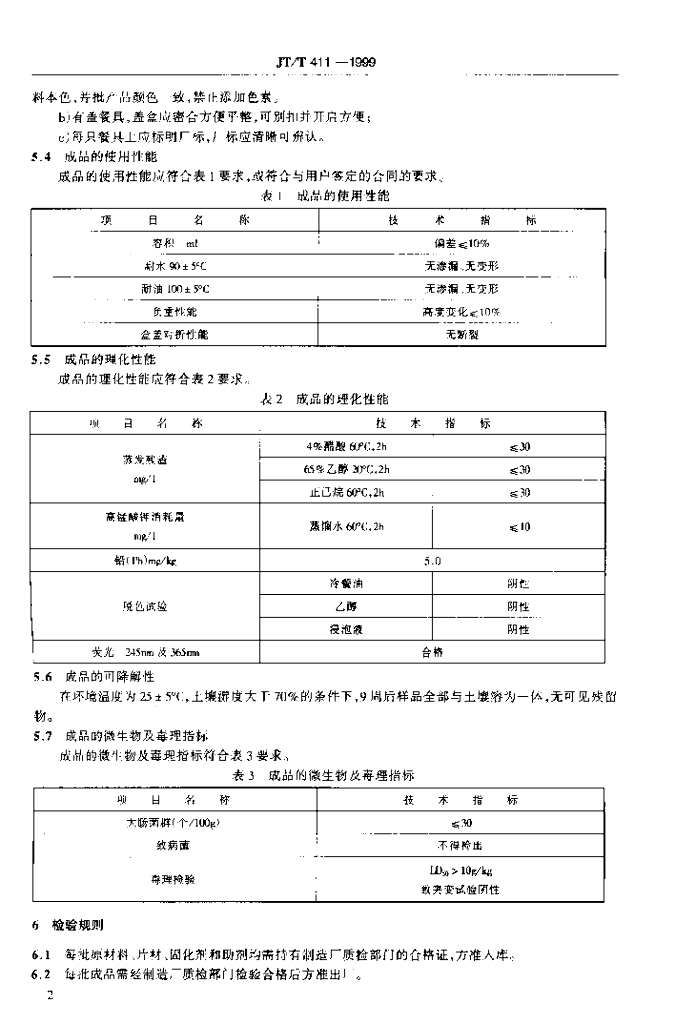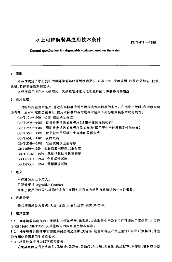 JT/T 411-1999 水上可降解餐具通用技术条件