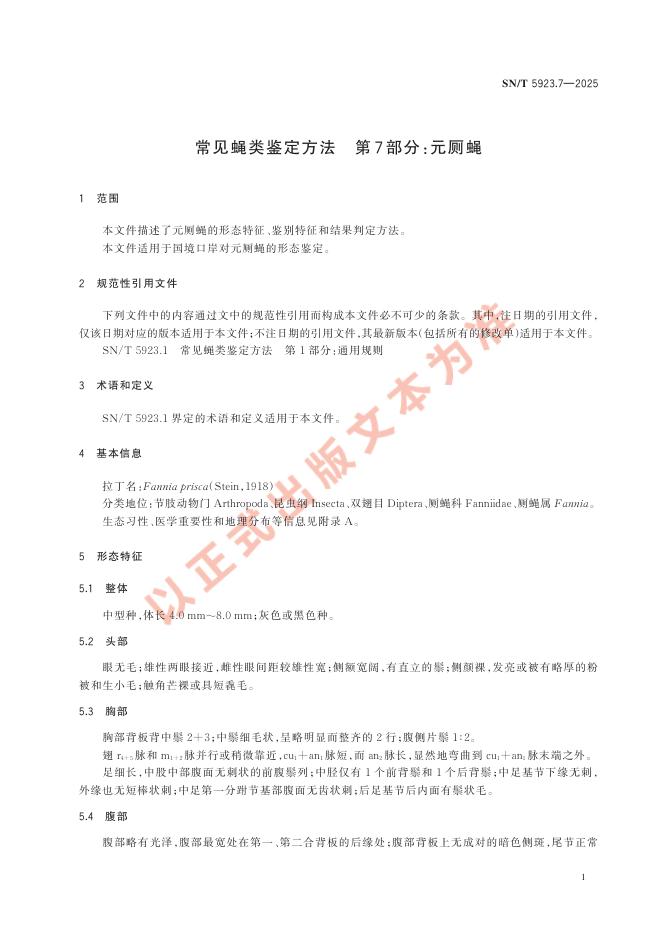 SN/T 5923.7-2025 常见蝇类鉴定方法 第7部分:元厕蝇