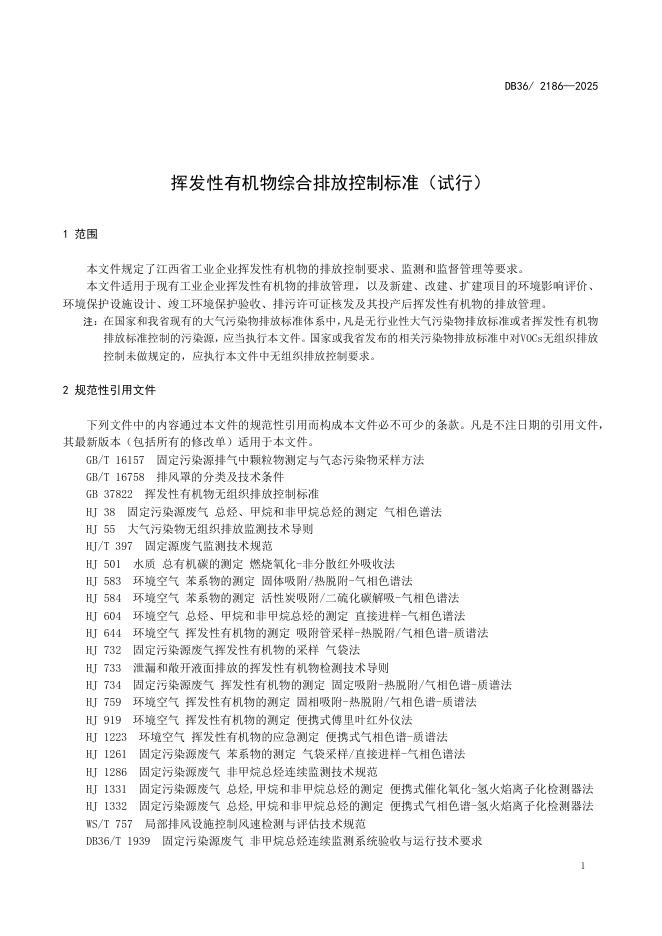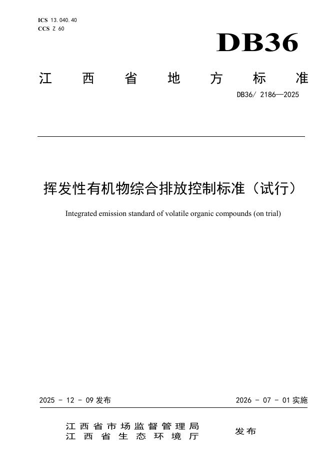 DB36/ 2186-2025 挥发性有机物综合排放控制标准(试行)