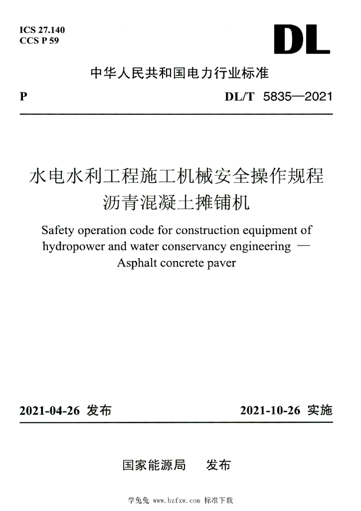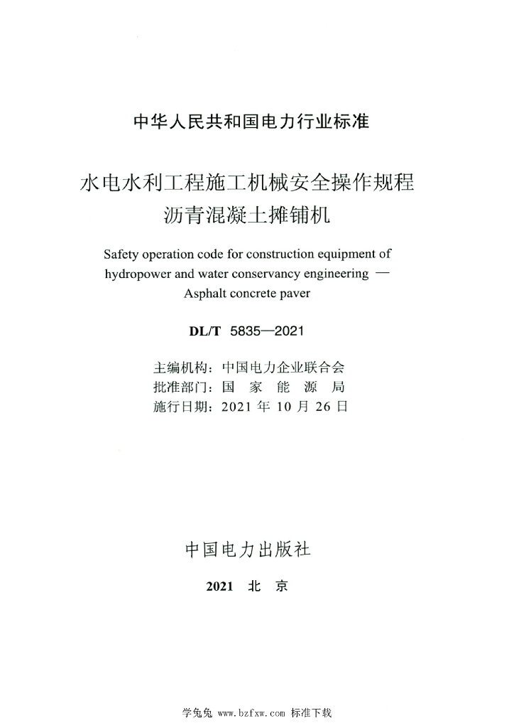 DL/T 5835-2021 水电水利工程施工机械安全操作规程沥青混凝土摊铺机