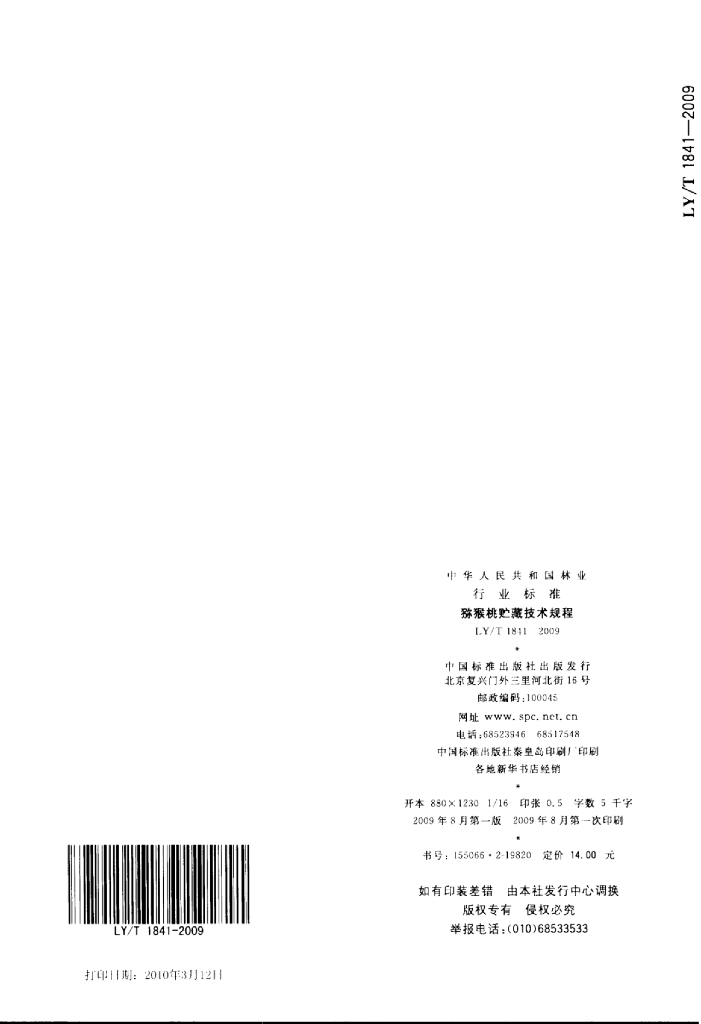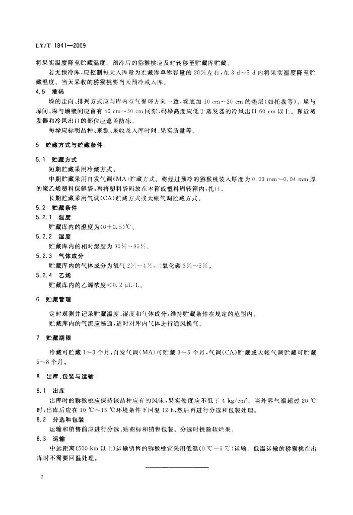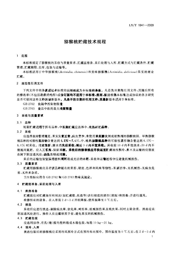 LY/T 1841-2009 猕猴桃贮藏技术规程