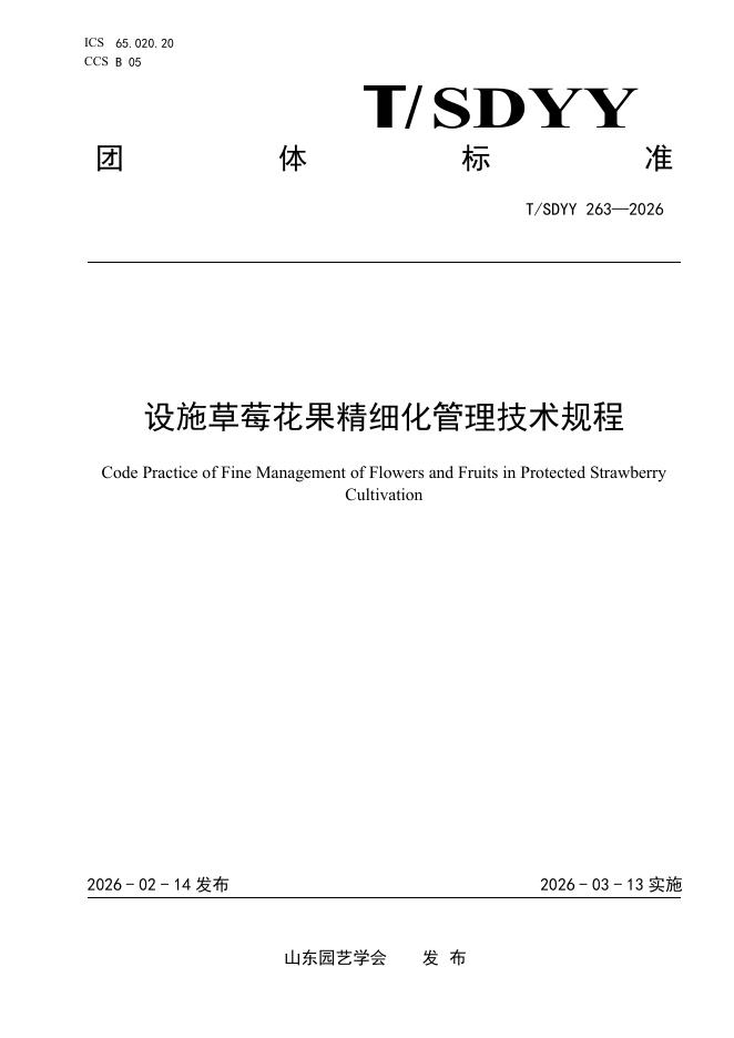 T/SDYY 263-2026 设施草莓花果精细化管理技术规程