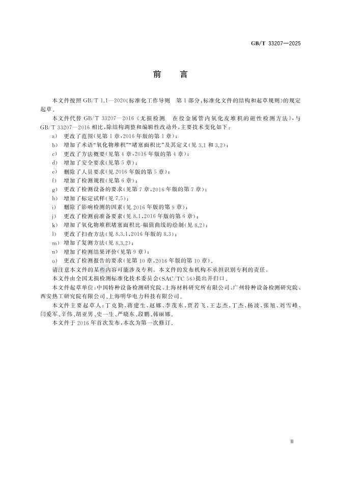 GB/T 33207-2025 无损检测 在役非铁磁性金属管内氧化物堆积的磁性检测方法