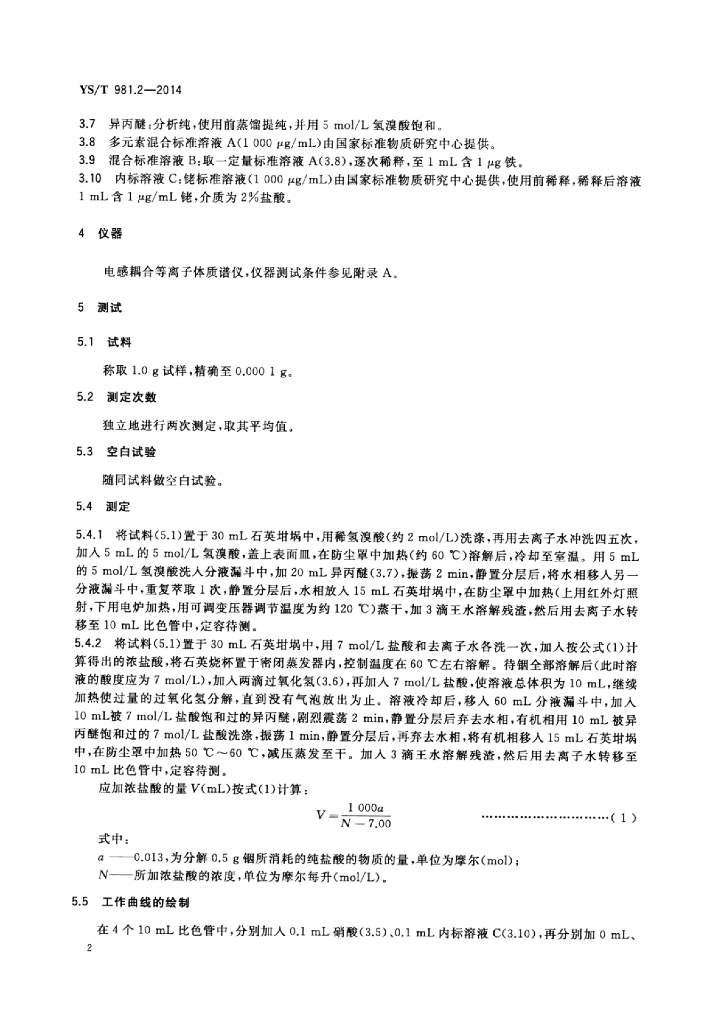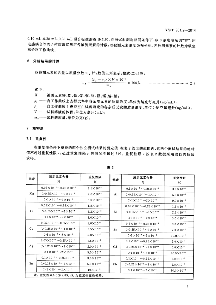 YS/T 981.2-2014 高纯铟化学分析方法镁、铝、铁、镍、铜、锌、银、镉、锡、铅的测定电感耦合等离子体质谱法