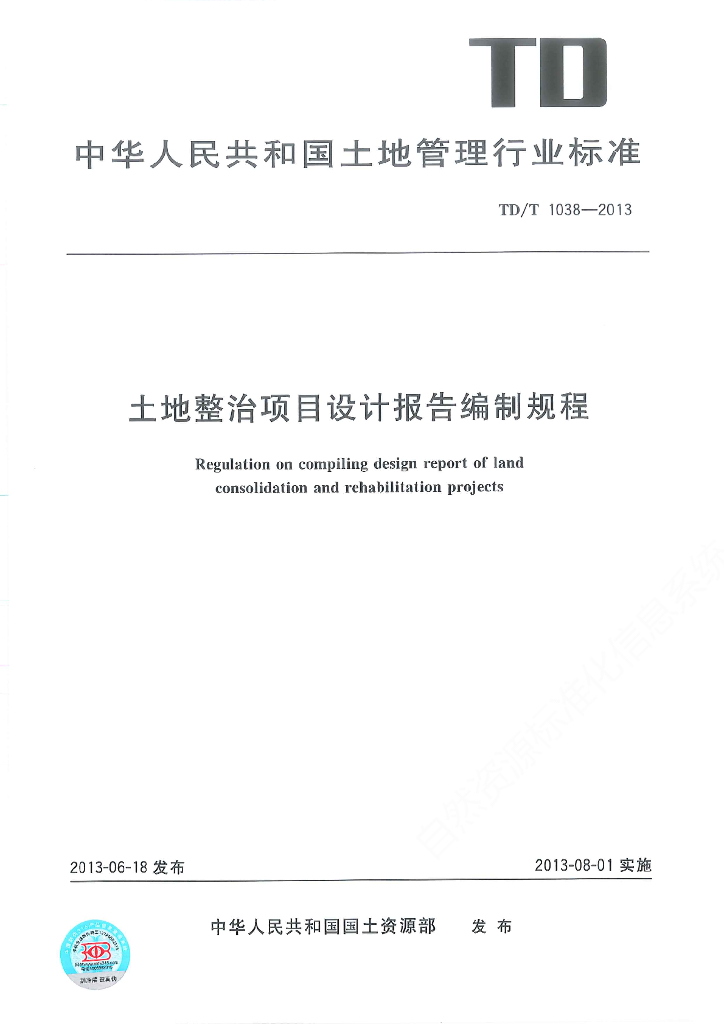 TD/T 1038-2013 土地整治项目设计报告编制规程