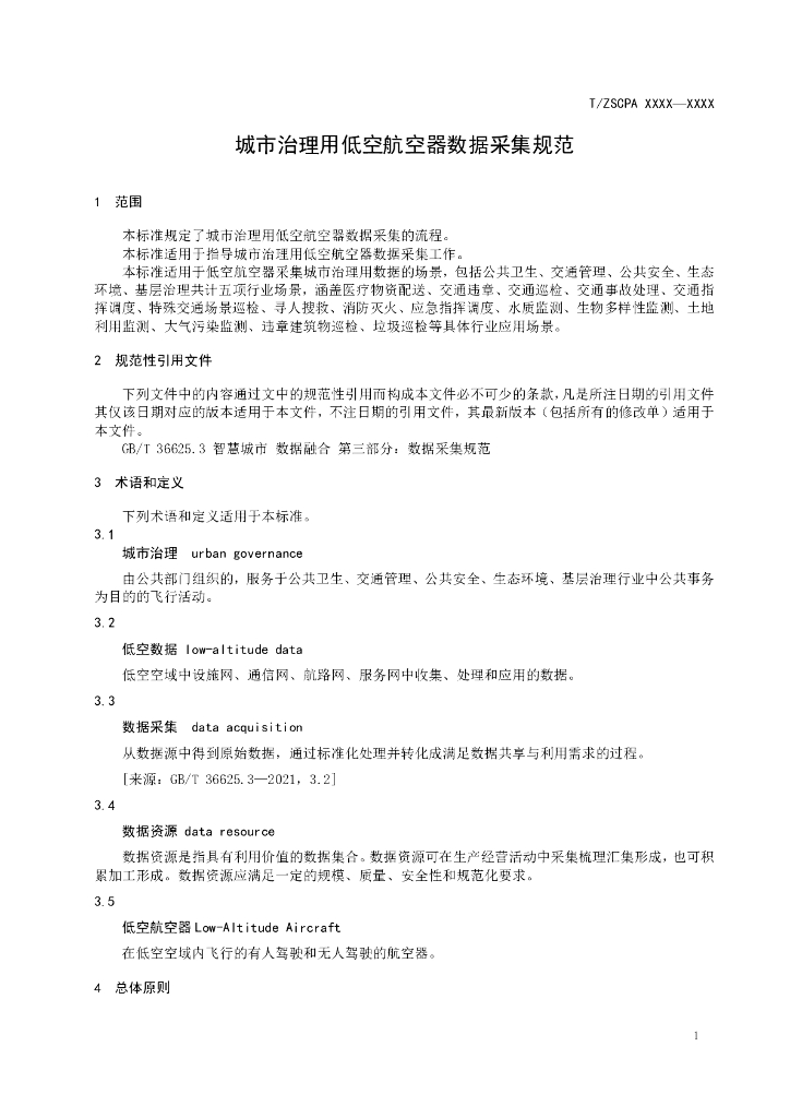 T/ZSCPA XXX-2025 城市治理用低空航空器数据采集规范(征求意见稿)