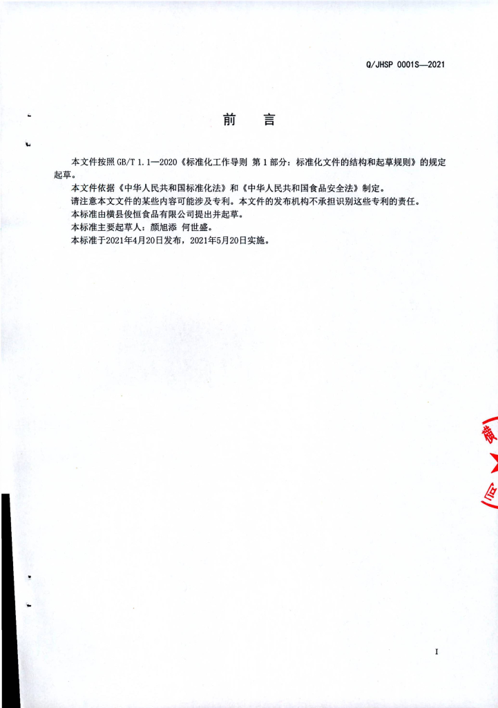 Q/JHSP 0001S-2021 水果干制品