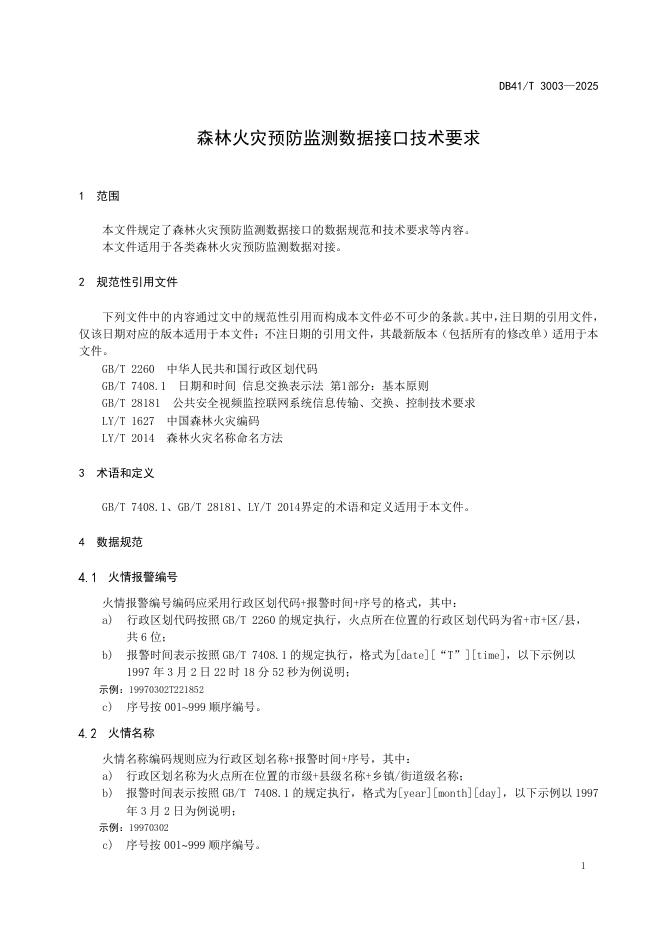 DB41/T 3003-2025 森林火灾预防监测数据接口技术要求