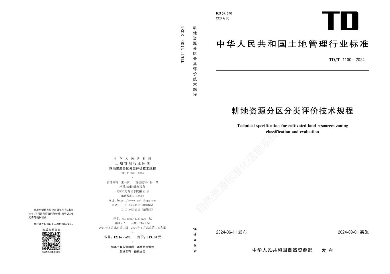 TD/T 1100-2024 耕地资源分区分类评价技术规程
