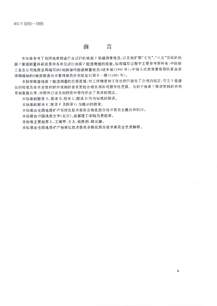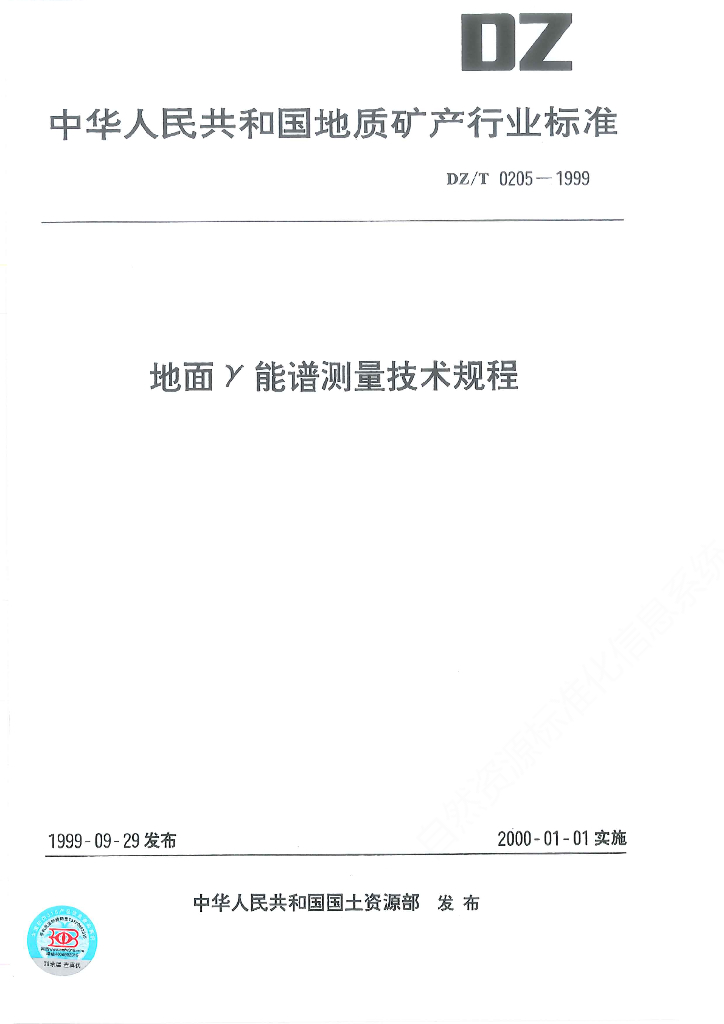 DZ/T 0205-1999 地面r能谱测量技术规程