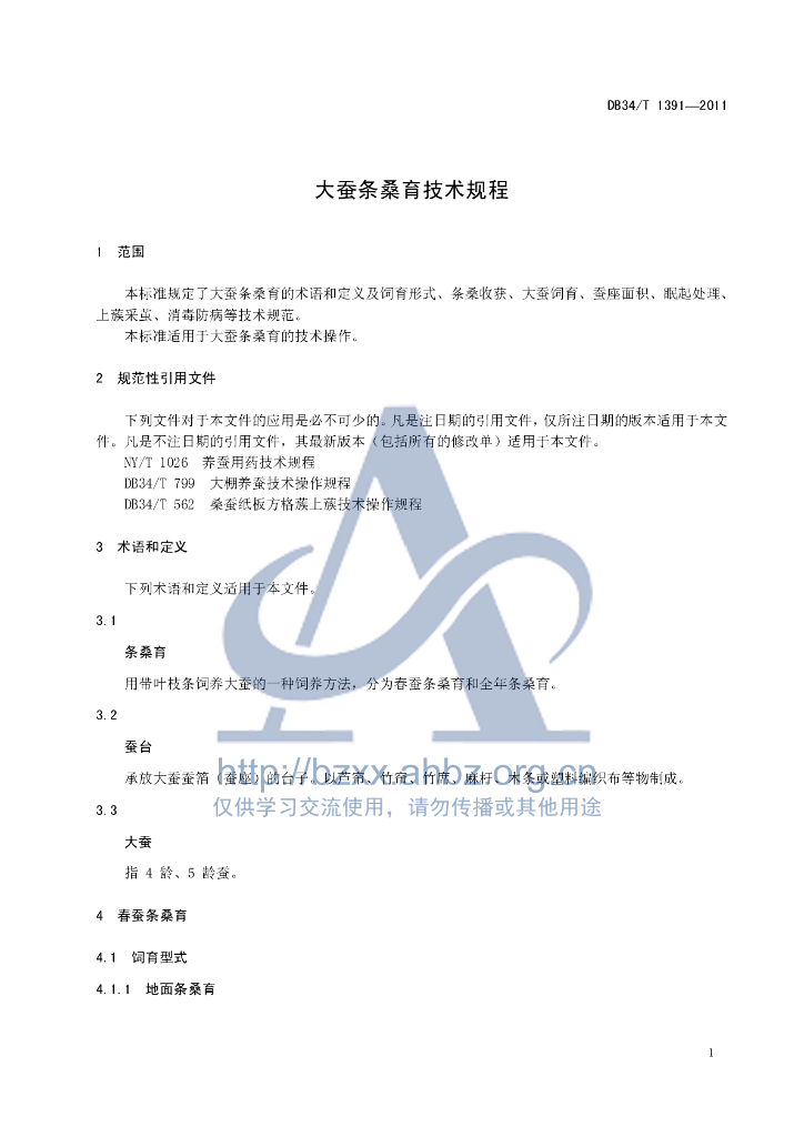DB34/T 1391-2011 大蚕条桑育技术规程