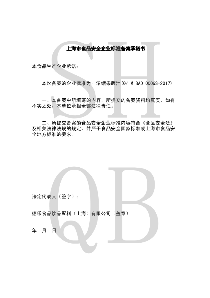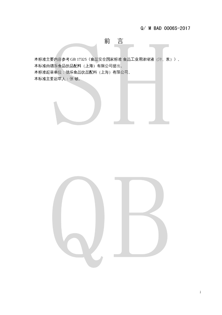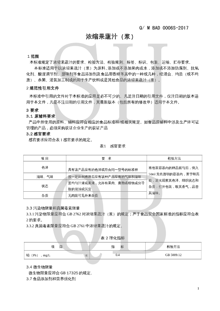Q/MBAD 0006S-2017 浓缩果蔬汁(浆)
