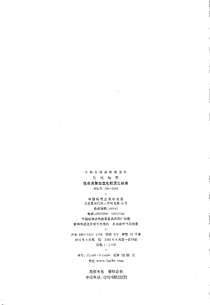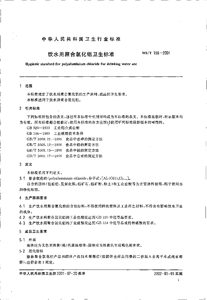 WS/T 198-2001 饮水用聚合氯化铝卫生标准