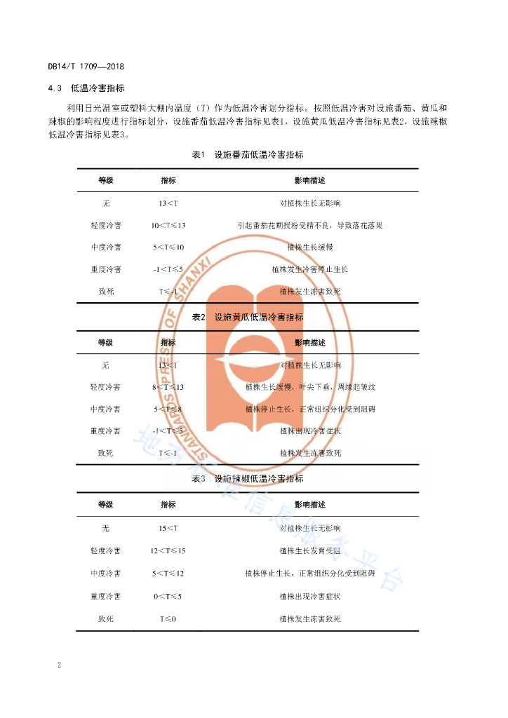 DB14/T 1709-2018 设施番茄 黄瓜 辣椒低温冷害等级划分