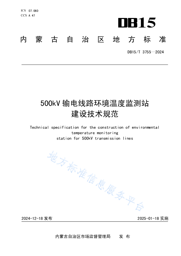DB15/T 3755-2024 500kV输电线路环境温度监测站建设技术规范