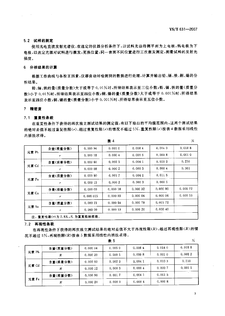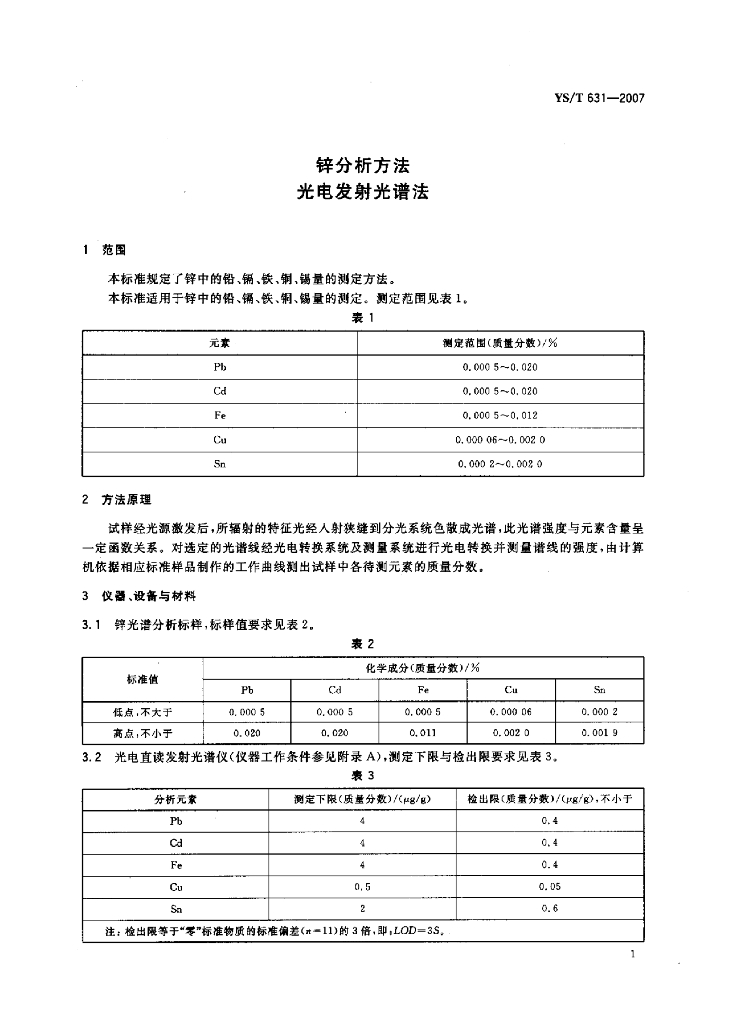 YS/T 631-2007 锌分析方法光电发射光谱法