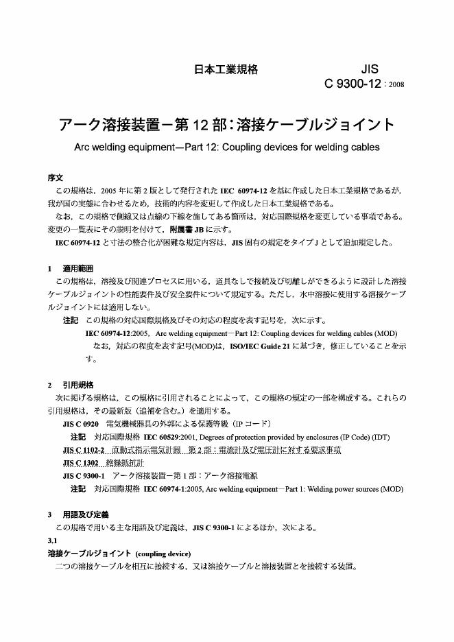 JIS C9300-12-2008 电弧焊接设备 第12部分:焊接电缆用连接装置