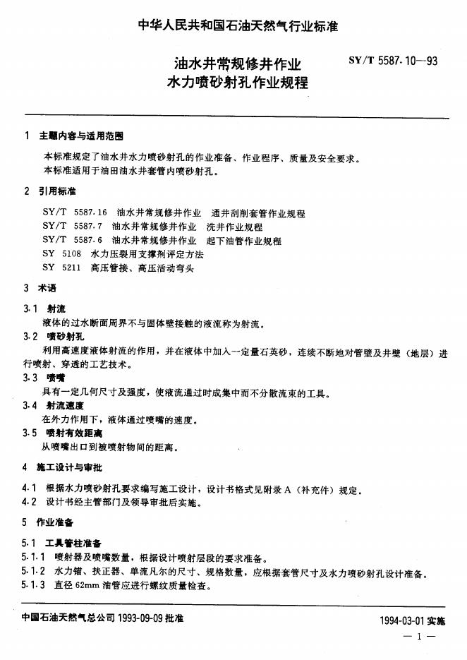 SY/T 5587.10-1993 油水井常规修井作业 水力喷砂射孔作业规程