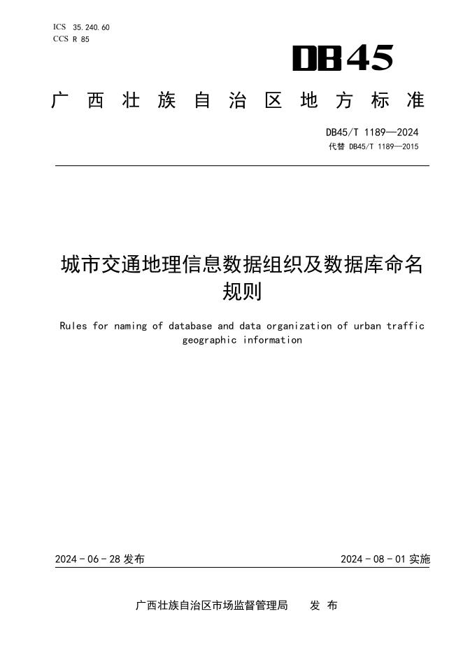 DB45/T 1189-2024 城市交通地理信息数据组织及数据库命名规则
