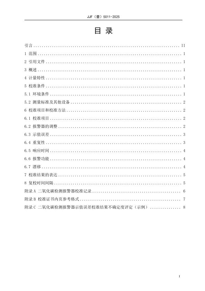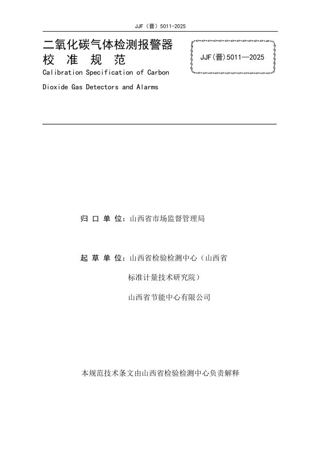 JJF(晋)5011-2025 二氧化碳气体检测报警器校准规范