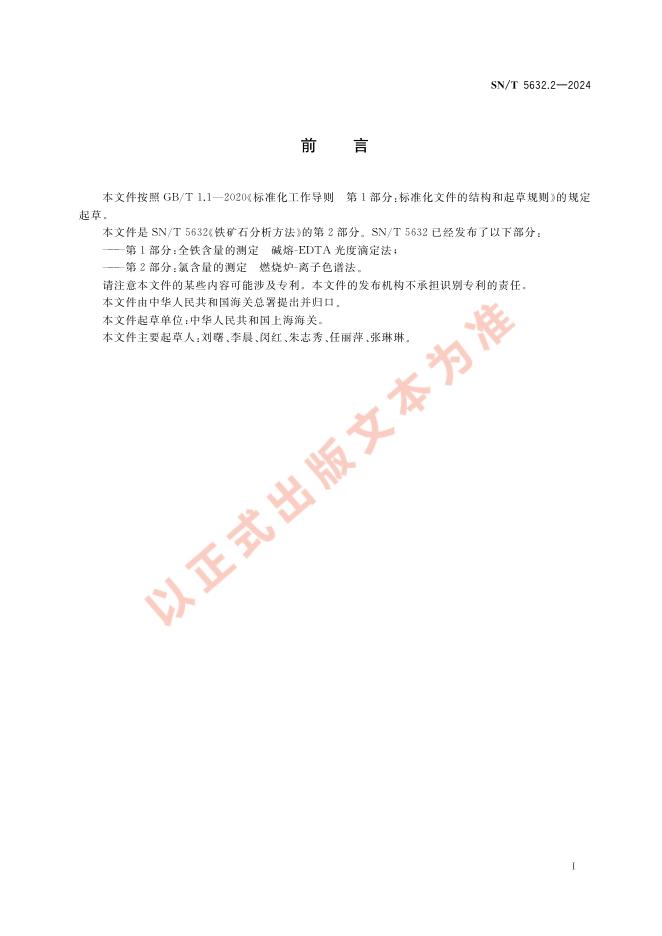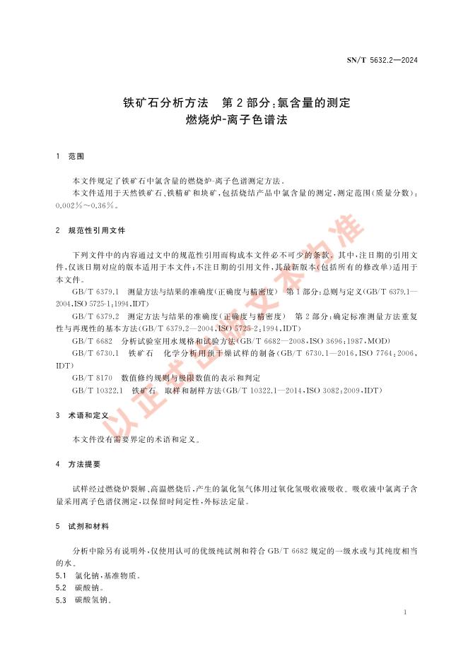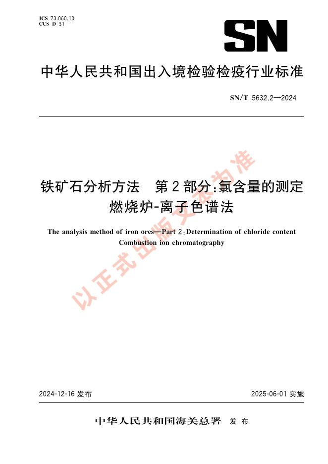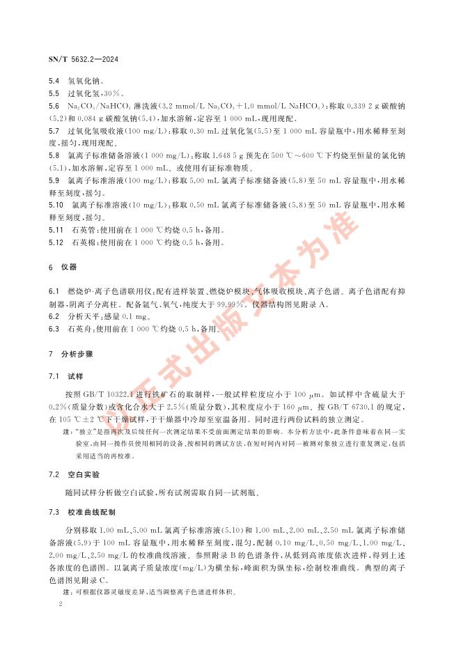 SN/T 5632.2-2024 铁矿石分析方法 第2部分:氯含量的测定 燃烧炉-离子色谱法
