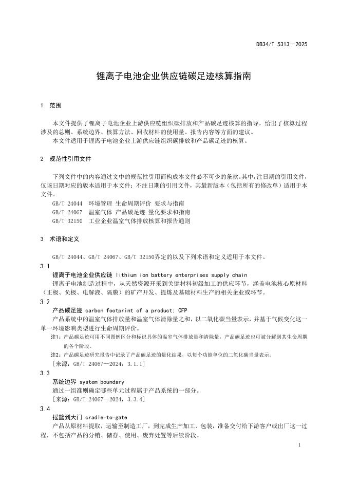 DB34/T 5313-2025 锂离子电池企业供应链碳足迹核算指南