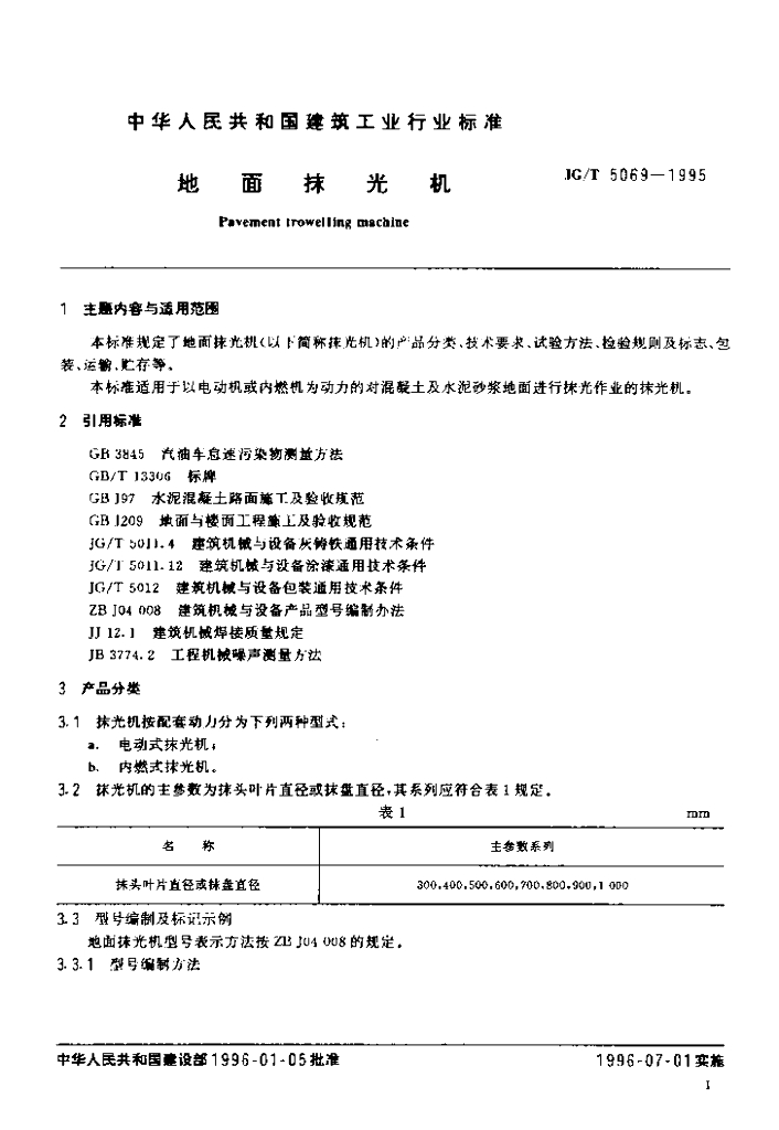 JG/T 5069-1995 地面抹光机