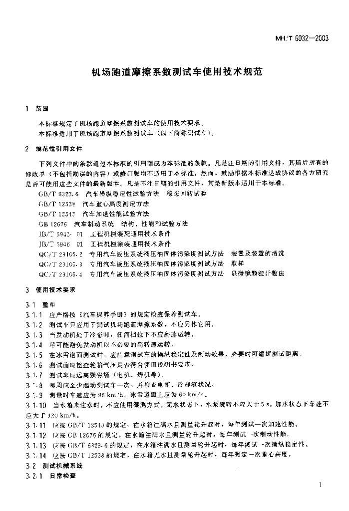 MH/T 6032-2003 机场跑道摩擦系数测试车使用技术规范