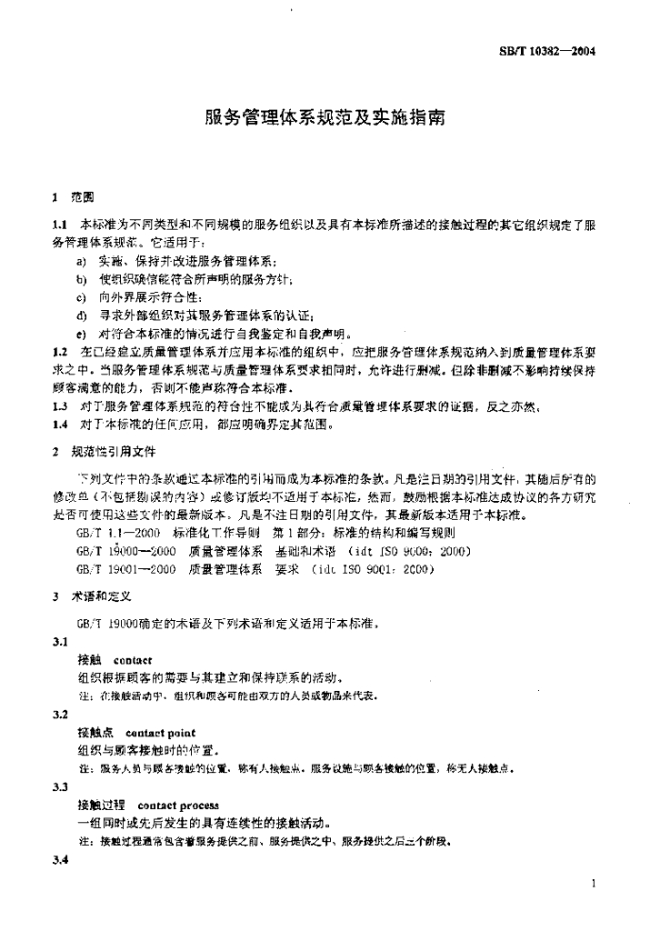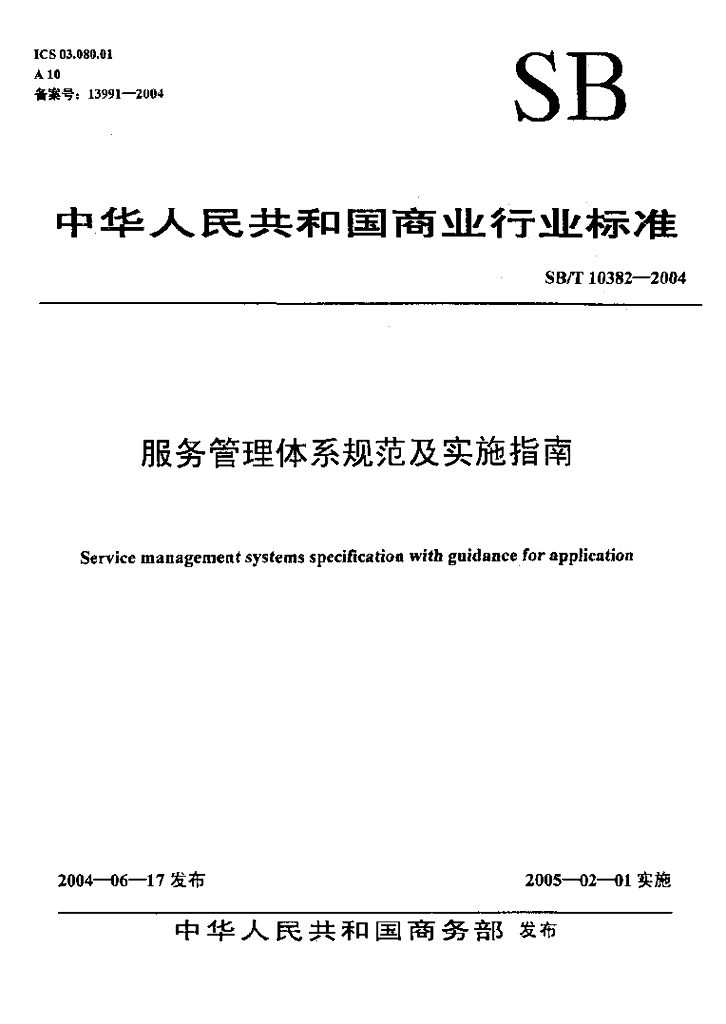 SB/T 10382-2004 服务管理体系规范及实施指南