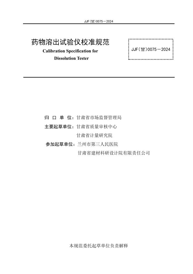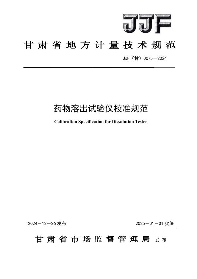 JJF(甘)0075-2024 药物溶出实验仪校准规范