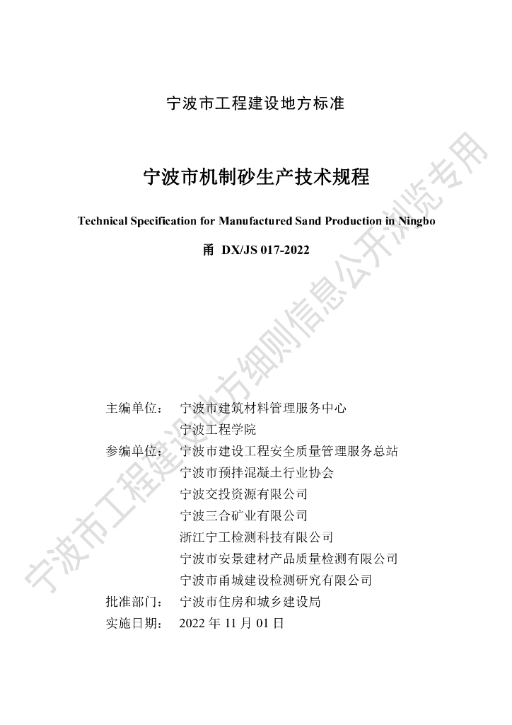 甬DX/JS 017-2022 宁波市机制砂生产技术规程