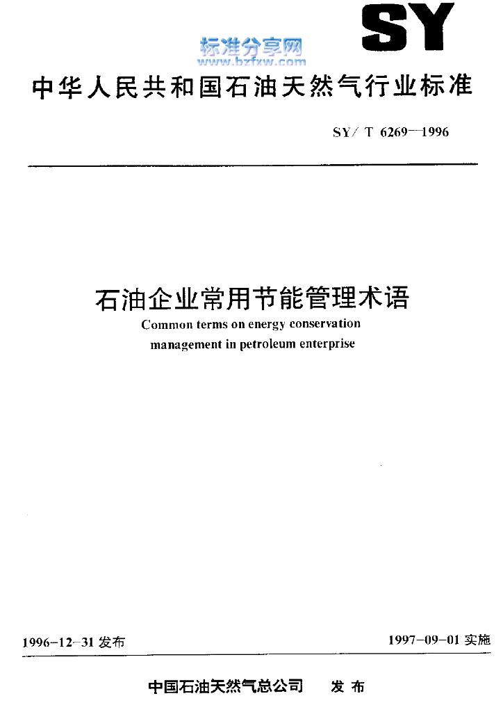SY/T 6269-1996 石油企业常用节能管理术语