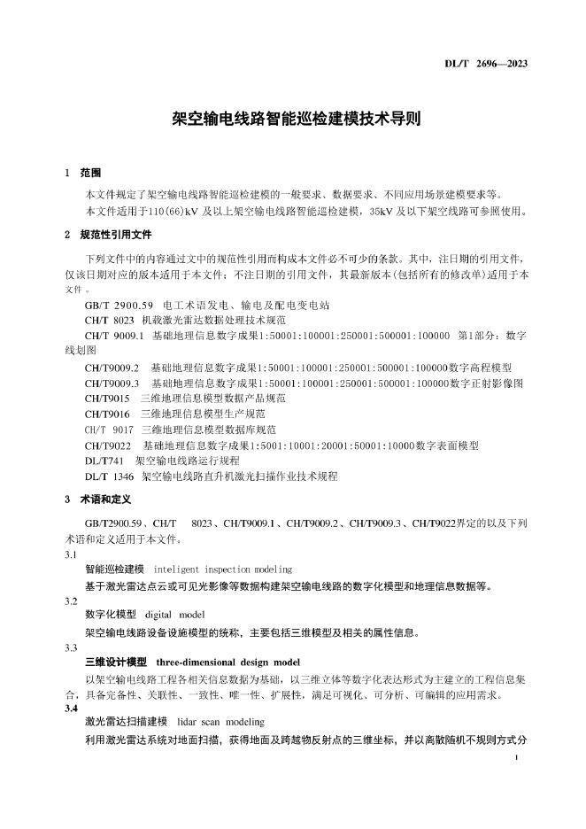 DL/T 2696-2023 架空输电线路智能巡检建模技术导则
