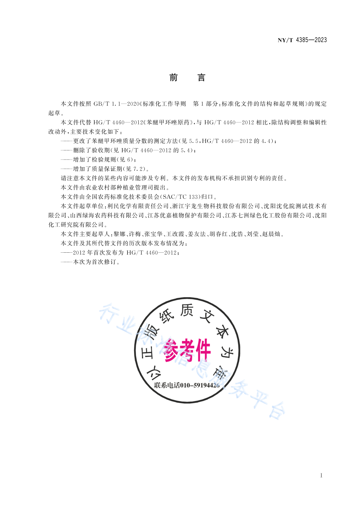 利民化学有限责任公司、浙江宇龙生物科技股份有限公司、沈阳沈化院测试技术有限公司、山西绿海农药科技有限公司、江苏优嘉植物保护有限公司、江苏七洲绿色化工股份有限公司、沈阳化工研究院有限公司
