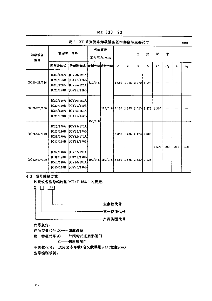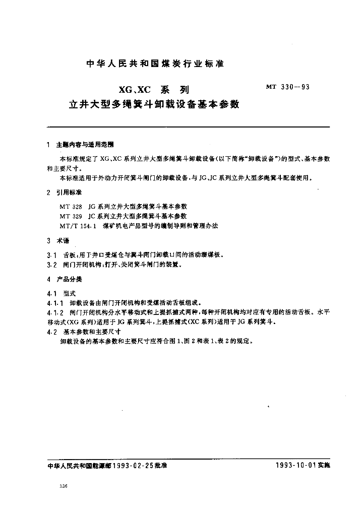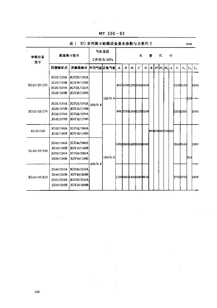 MT 330-1993 XG.XC系列 立井大型多绳箕斗卸载设备基本参数